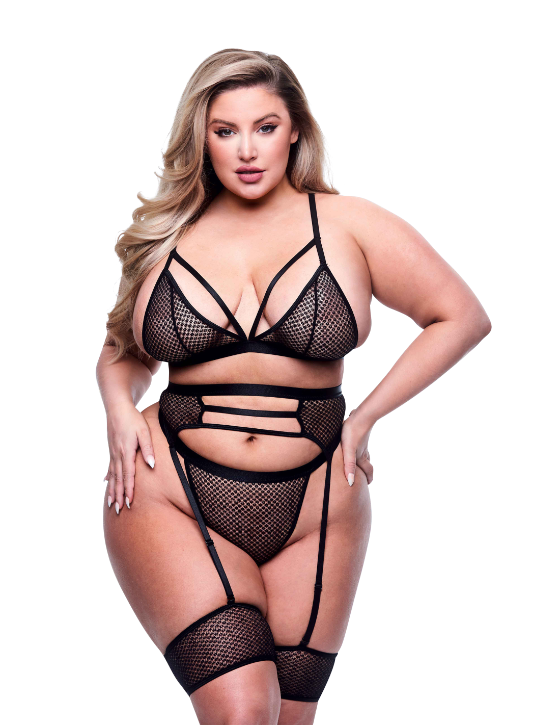 Sentirse sexy comienza por dentro, ¡pero nunca está de más hacer que el exterior también sea tan sexy como el pecado! Este conjunto de tres piezas, diseñado en verde esmeralda o negro medianoche, comienza con un bralette transparente y de tiras. Combinado perfectamente con el liguero de cintura alta (¡e igualmente con tiras!) y el tanga de corte alto a juego, ¡estás lista para lucir sexy durante todo el día y la noche!