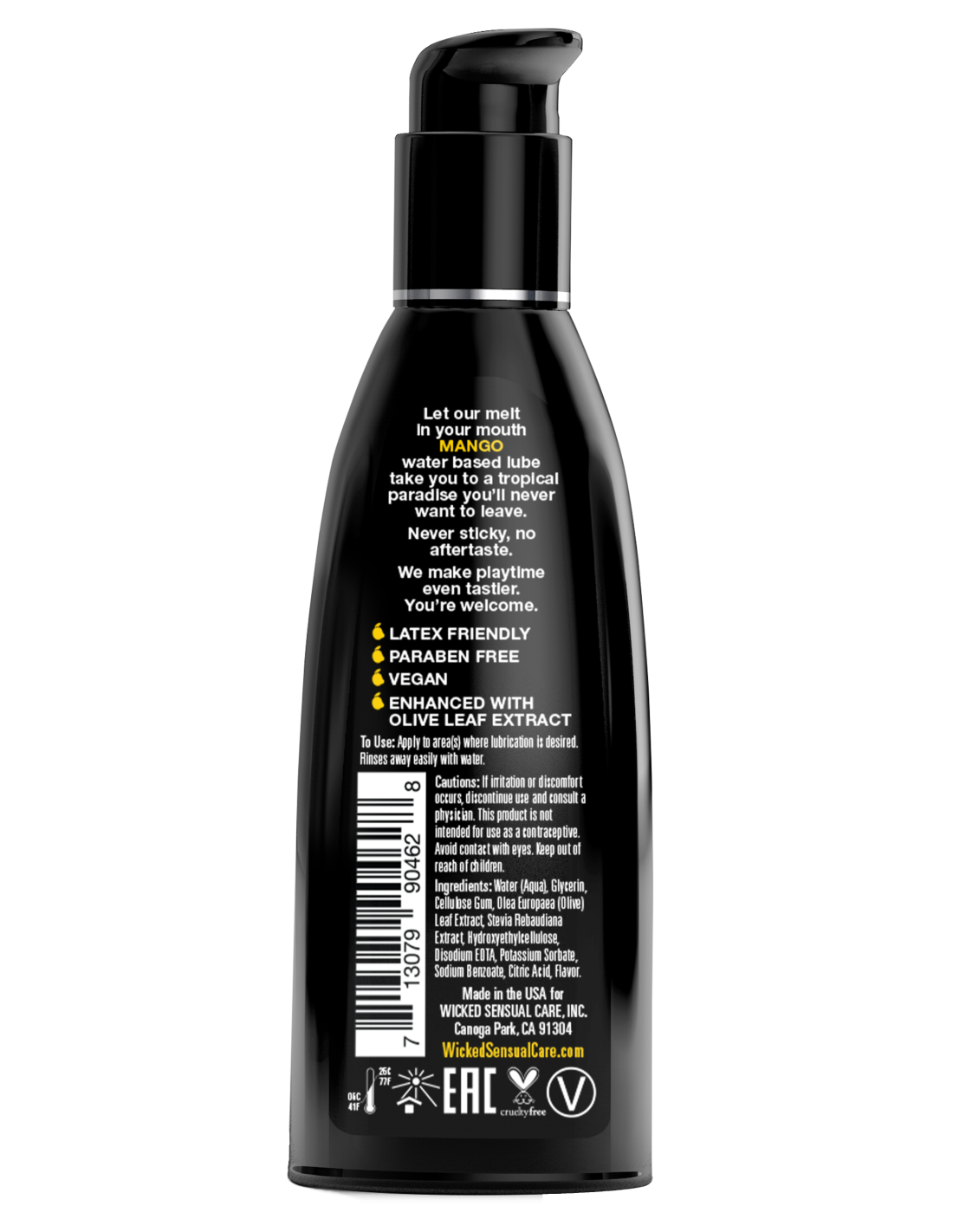 Deja que este lubricante a base de agua de mango Wicked, que se derrite en la boca, te lleve a un paraíso tropical que nunca querrás abandonar. Nunca pegajoso, sin regusto. Wicked hace que el tiempo de juego sea aún más sabroso. Los lubricantes con sabores malvados están endulzados con Stevia, lo que los hace seguros para el juego oral, vaginal y anal.