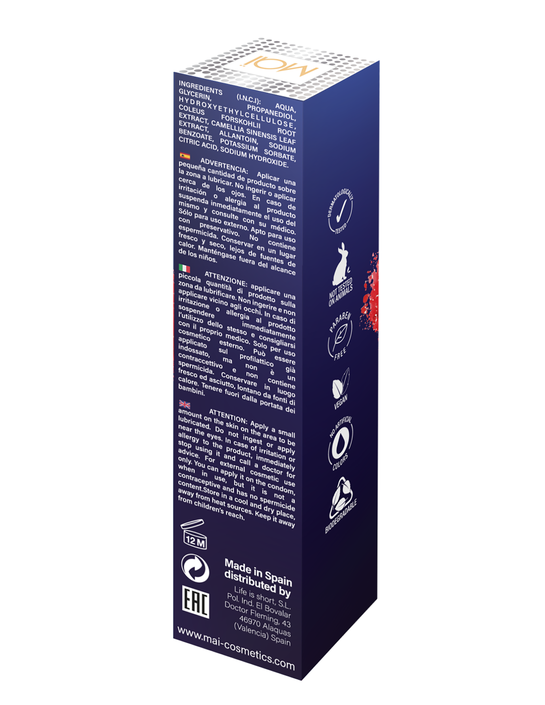 Sin parabenos: el lubricante anal para ella MAI Animation no contiene parabenos. Los parabenos se han relacionado con la irritación en personas con sensibilidad y alergias.