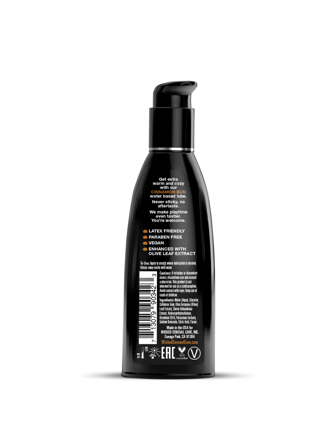 ¡Tan delicioso que pensarías que es real! El lubricante personal Wicked Aqua Cinnamon Bun agrega sabores naturales sutiles y deliciosos para mejorar los placeres orales. Ligera y sedosa, esta fórmula a base de agua es la combinación sensual perfecta de un lubricante elegante y una sensación de sabor. Nunca pegajoso y sin regusto, Wicked Aqua Cinnamon Bun satisface tu gusto por lo dulce y tus deseos íntimos, todo en un increíble producto de placer. El sexo oral nunca supo tan bien. Ya sea que estés dando o recibiendo, los sabores Wicked te darán una nueva confianza sexy. Los lubricantes con sabor Wicked están endulzados con Stevia, lo que los hace seguros para el juego oral, vaginal y anal.