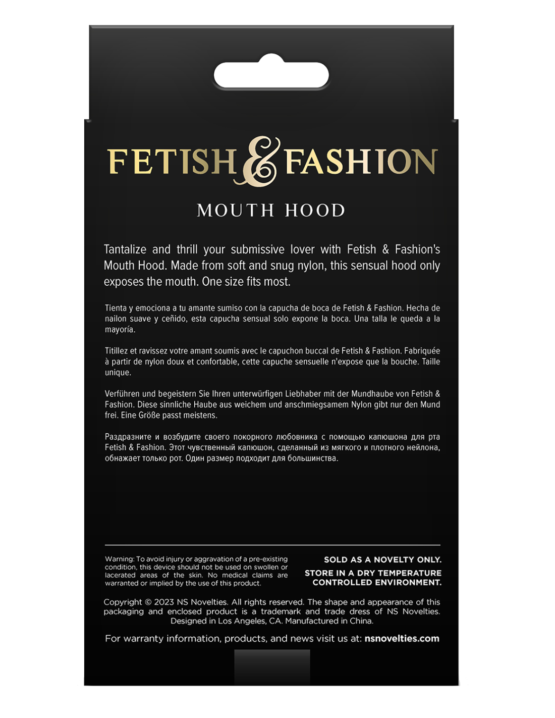 Tantalize and thrill your submissive lover with Fetish & Fashion’s Mouth Hood. Made from soft and snug nylon, this sensual hood only exposes the mouth. One size fits most.