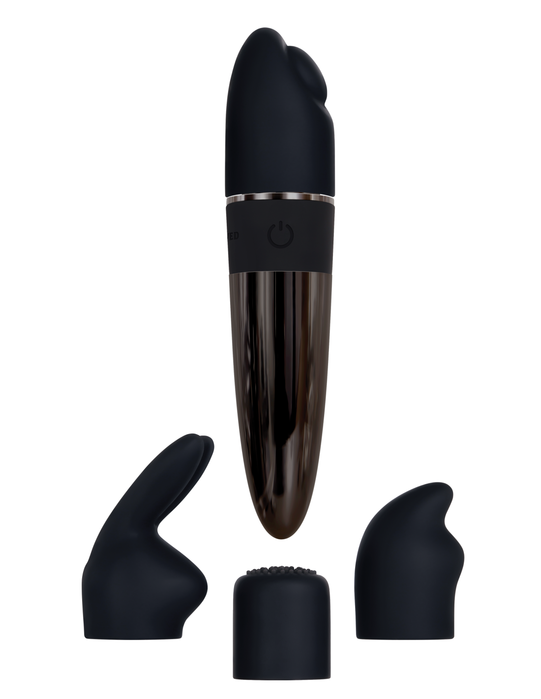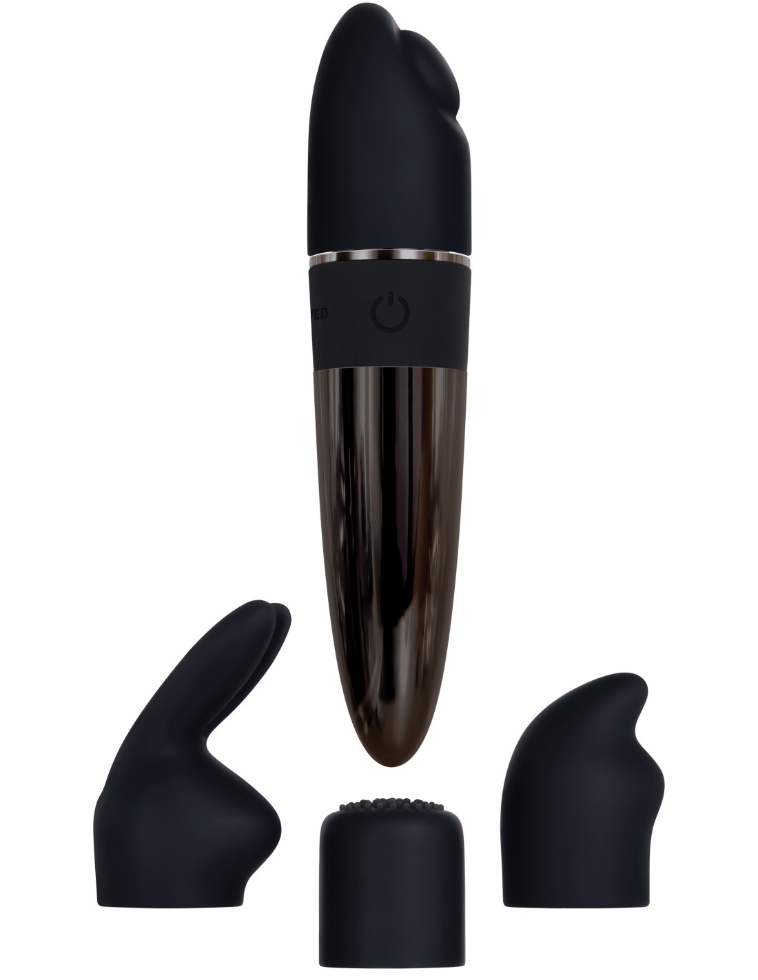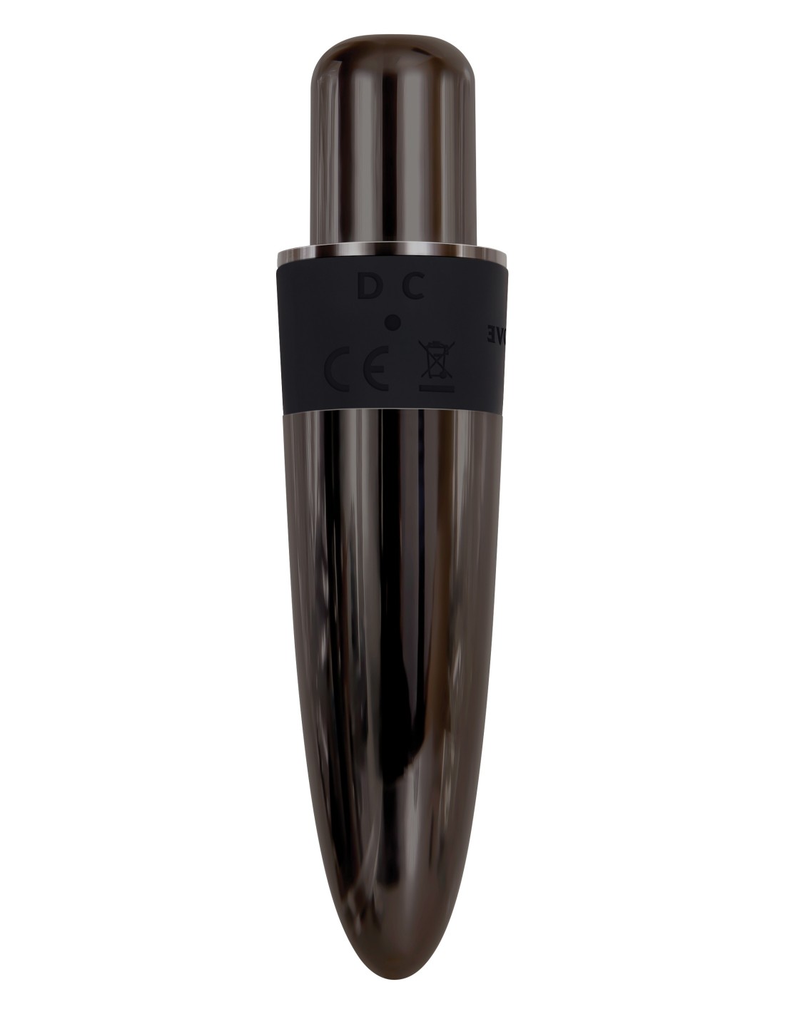 - Vibrador fabricado en plástico ABS con acabado cromado negro