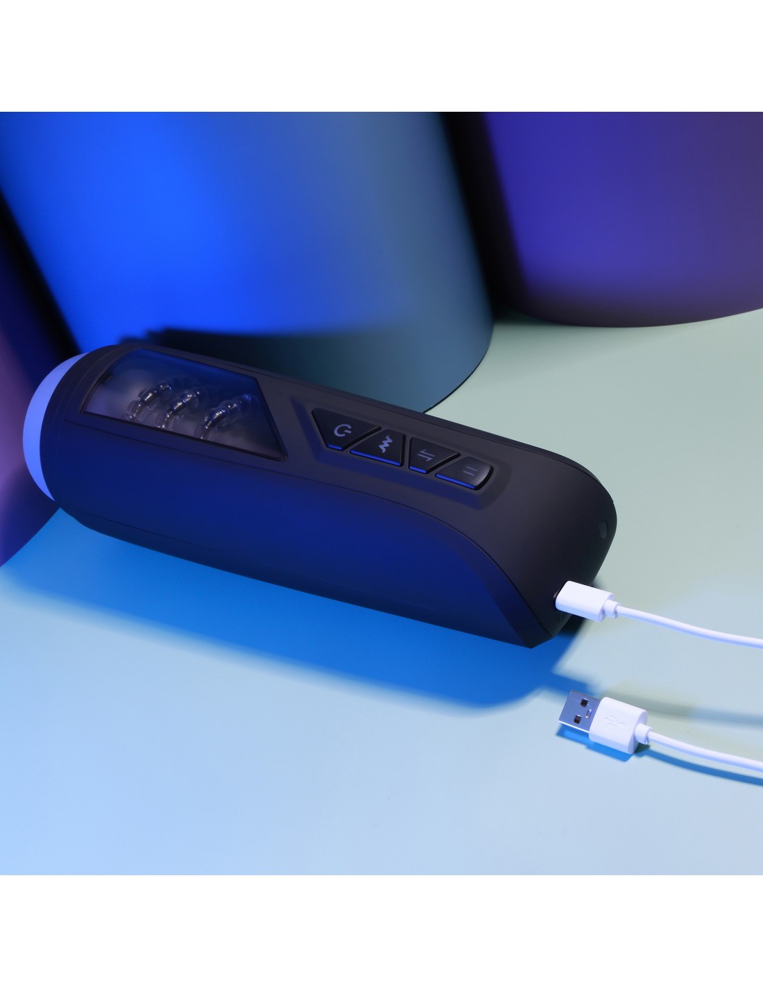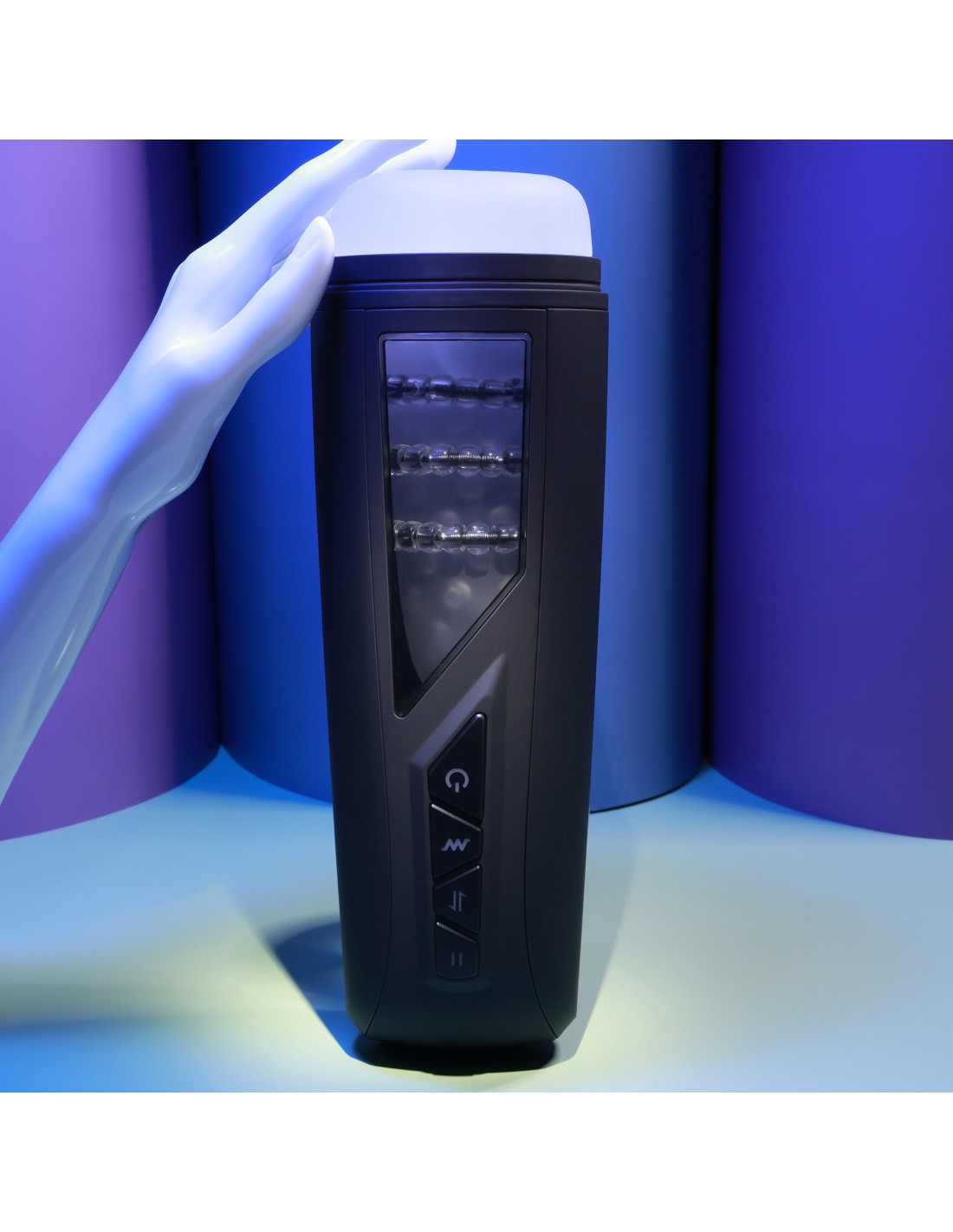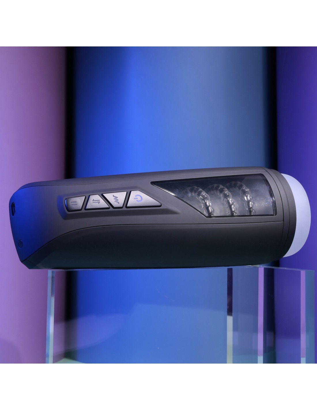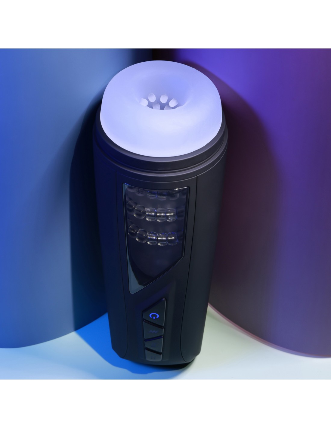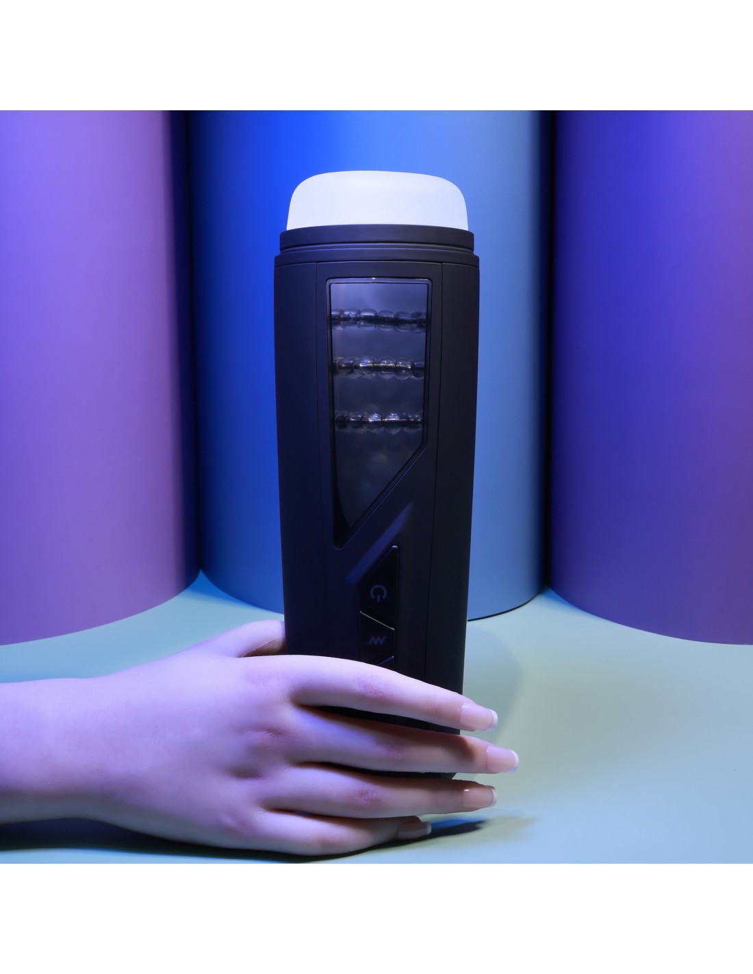 - Juega conmigo (característica clave): Stroker vibratorio con cuentas y cámara voyeur