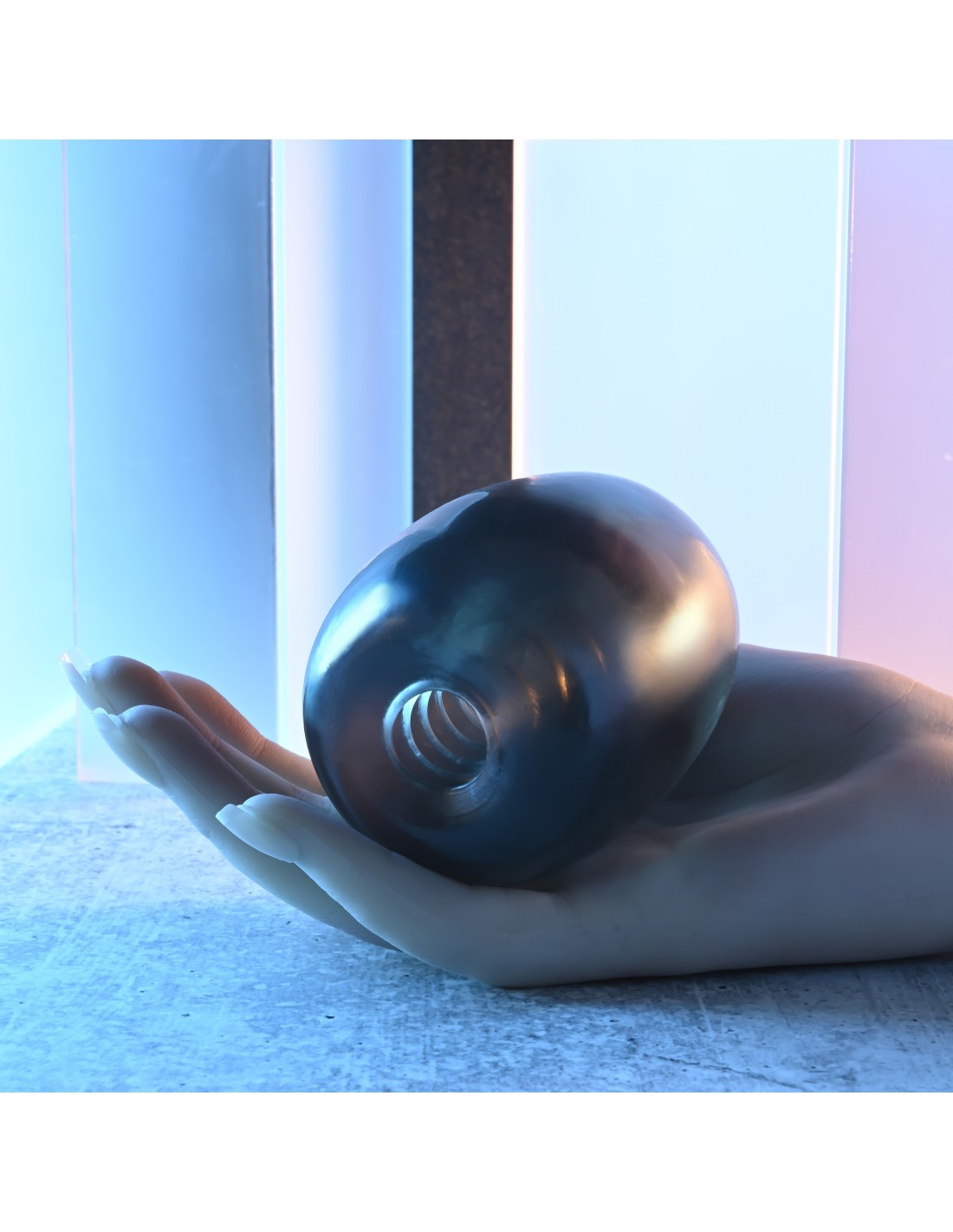 ¡Sumérgete en el vórtice de placer y experimenta la máxima sensación con un acariciador elegante y minimalista! 2 entradas únicas a cada lado de su cilindro de silicona conducen a un canal interior suave y elástico con textura en espiral que tiene como objetivo complacer y apretar. Agarre la cubierta exterior y apriétela hasta obtener la presión deseada, ¡dejando que el anillo de ajuste negro central complete la experiencia del vórtice! Fácil de limpiar y totalmente sumergible en agua.