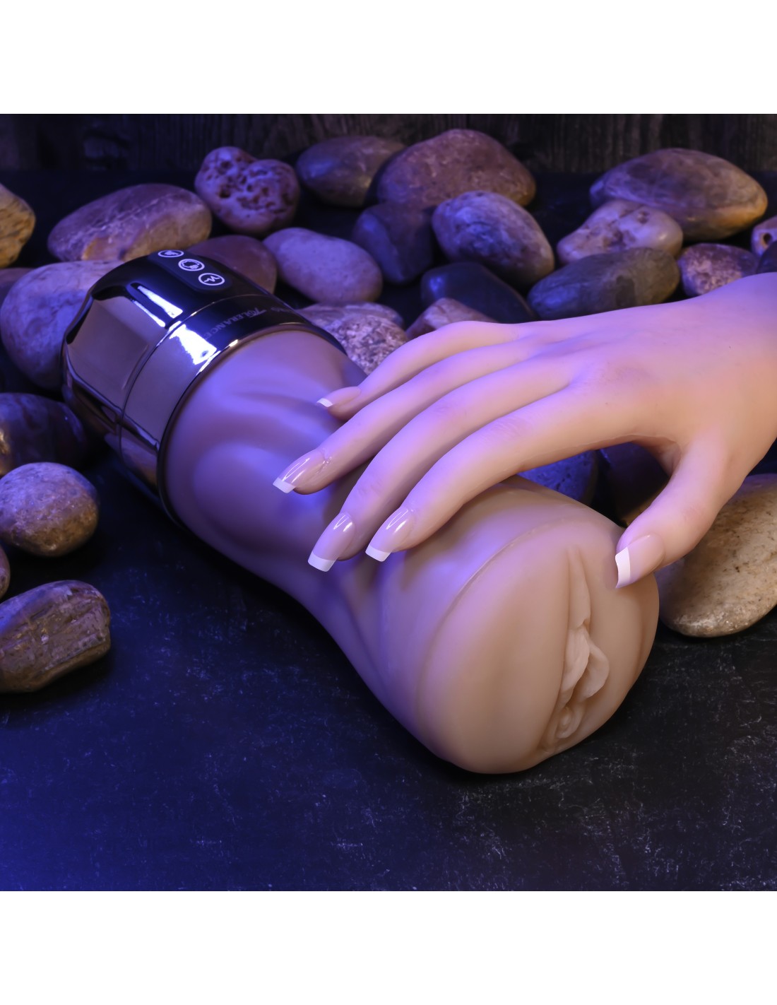 Este acariciador realista no solo succiona y vibra con dos potentes motores independientes, sino que también se flexiona y aprieta para satisfacer tu deseo con cada golpe. El material de doble capa se siente deliciosamente realista al tacto con una capa interior suave y una capa exterior más firme, y mucha textura dentro del canal.