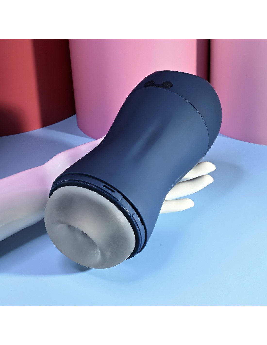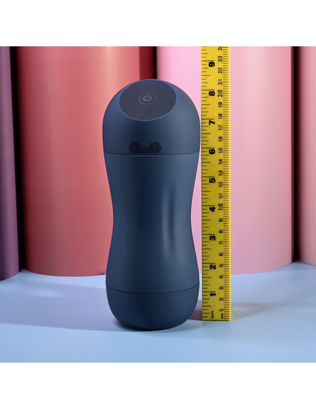 Go for the Gusto! This state-of-the-art stroker has a realistically textured channel you can slide into. Experience a variety of sucking and vibrating speeds and rhythms that mimic the sensations of a classic blow job. Multiple motors work independently for the ultimate customization. Classy-looking and discreet, the sleeve, vibrating bullet, and protective cap can be easily removed for cleaning.