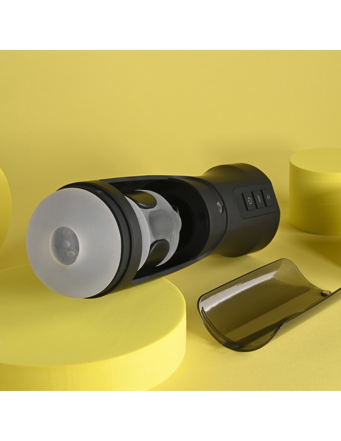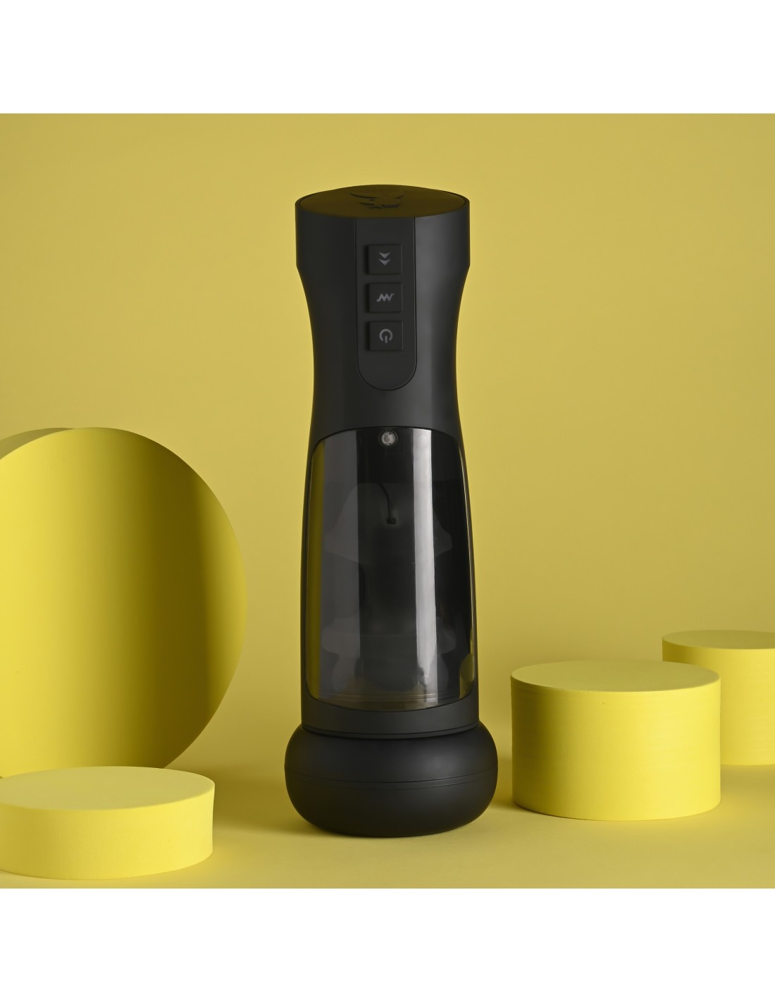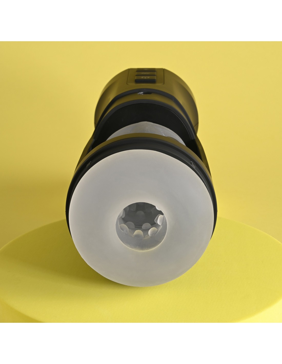 Enjoy the journey and the End Game with this powerful Stroker designed for exquisite long-lasting pleasure. Experience a whole new realm of sensations thanks to the supple, textured inner sleeve that strokes, vibrates, and warms up to a delicious 100+F degrees. With an elegant design and easy-to-use UV stand for sanitizing post cleaning, you can be sure you’re always ready for your next adventure.