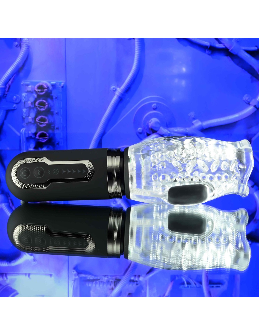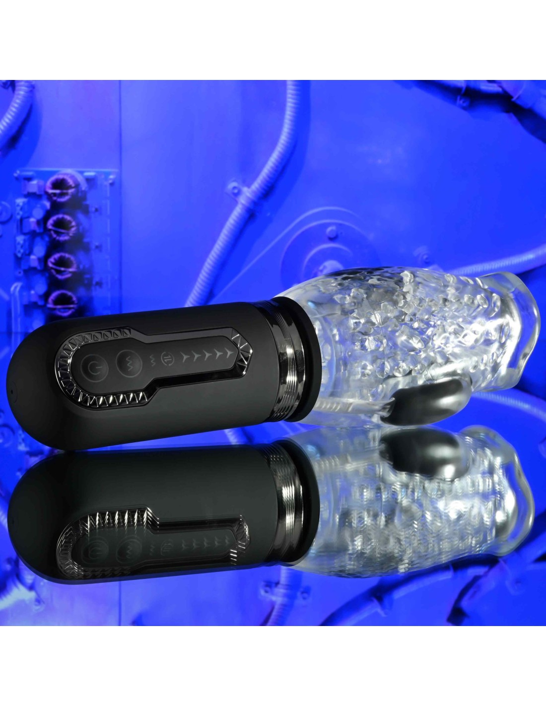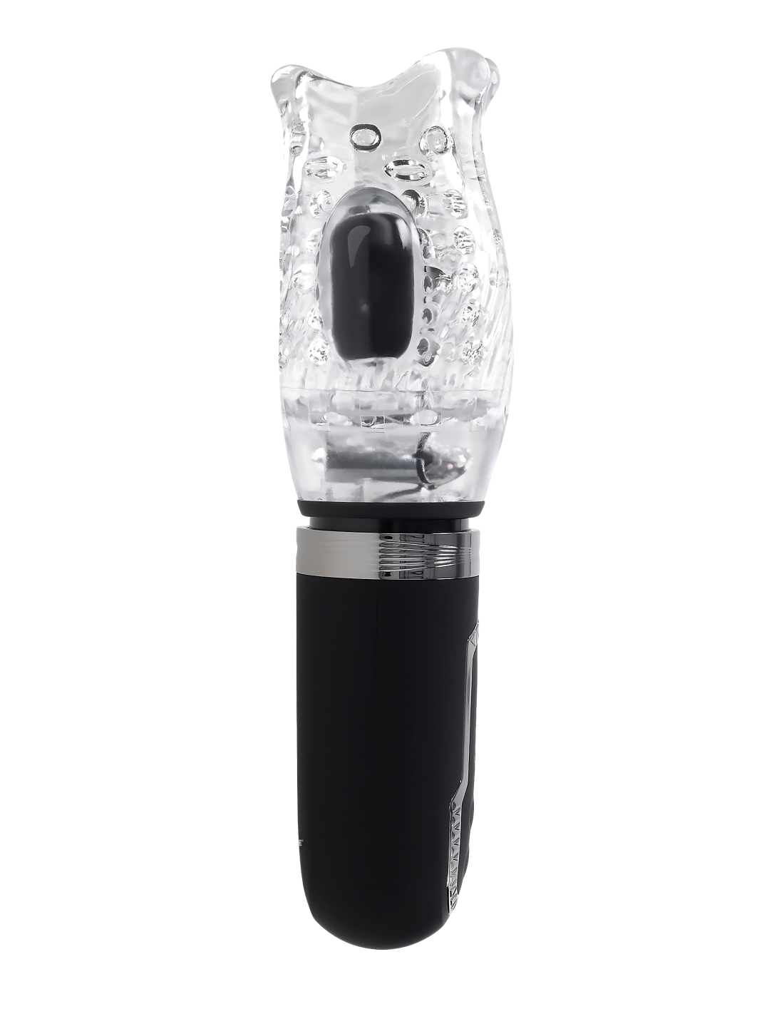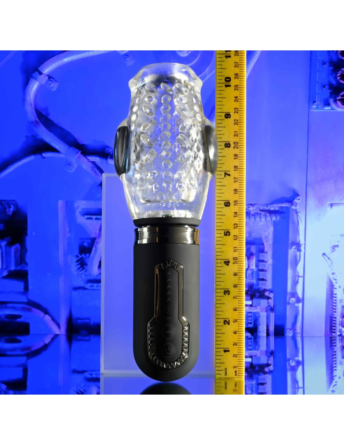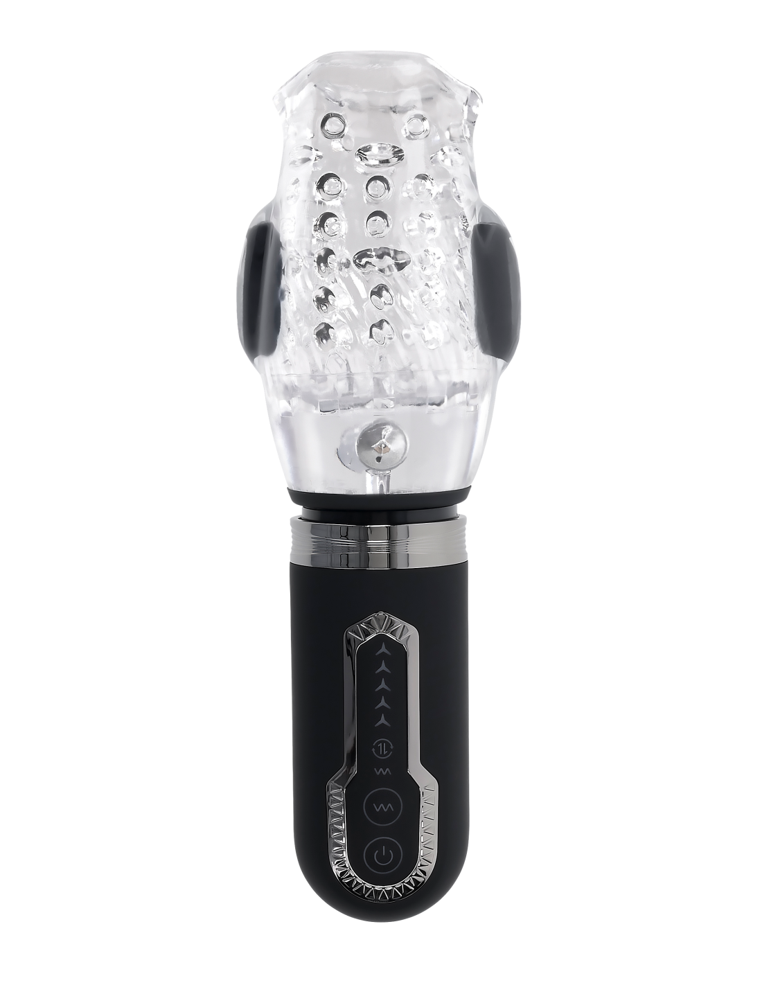Experience the triple ecstasy of a thrusting, spinning, vibrating stroker. Grab the stylish matte handle and ease into the mouth-shaped entry that quickly envelopes you in a soft and stretchy, tight nubbed channel. Use the ergonomic control panel to operate each powerful motor separately, navigating between vibration, thrust and spin – or all three at once for the ultimate fantasy fulfillment.