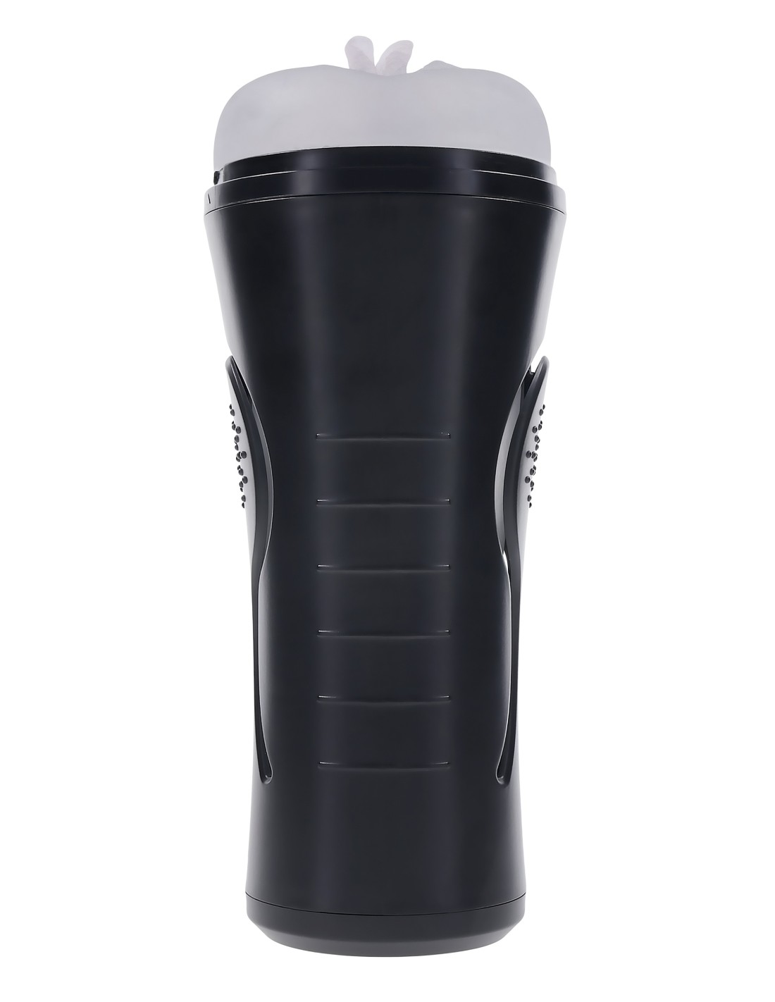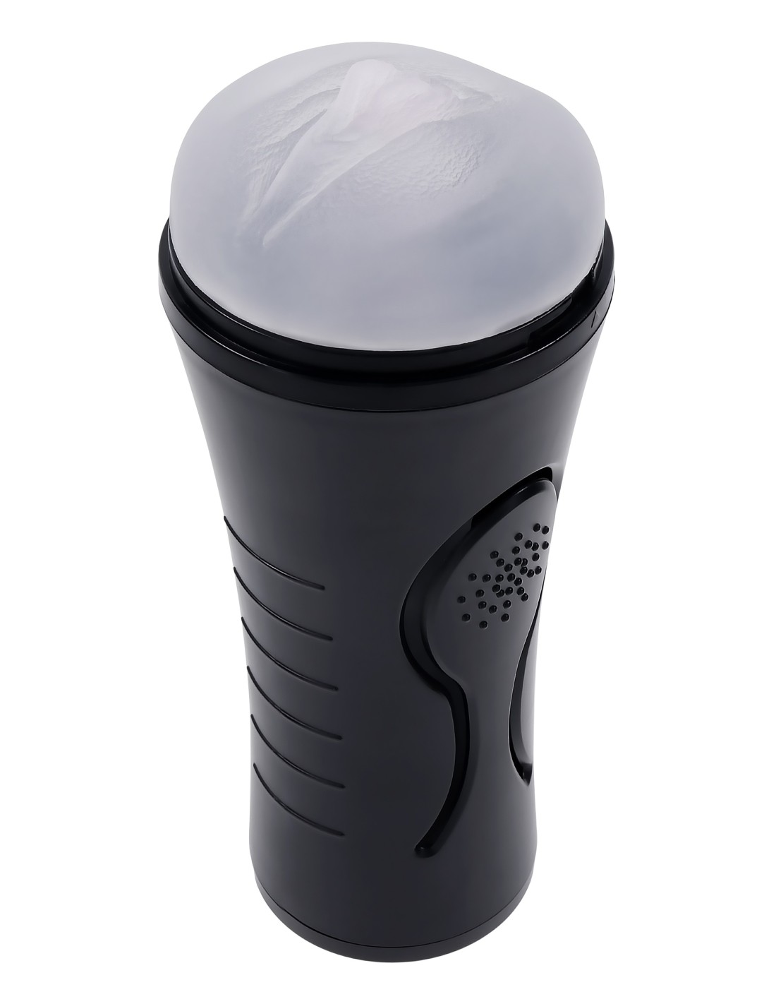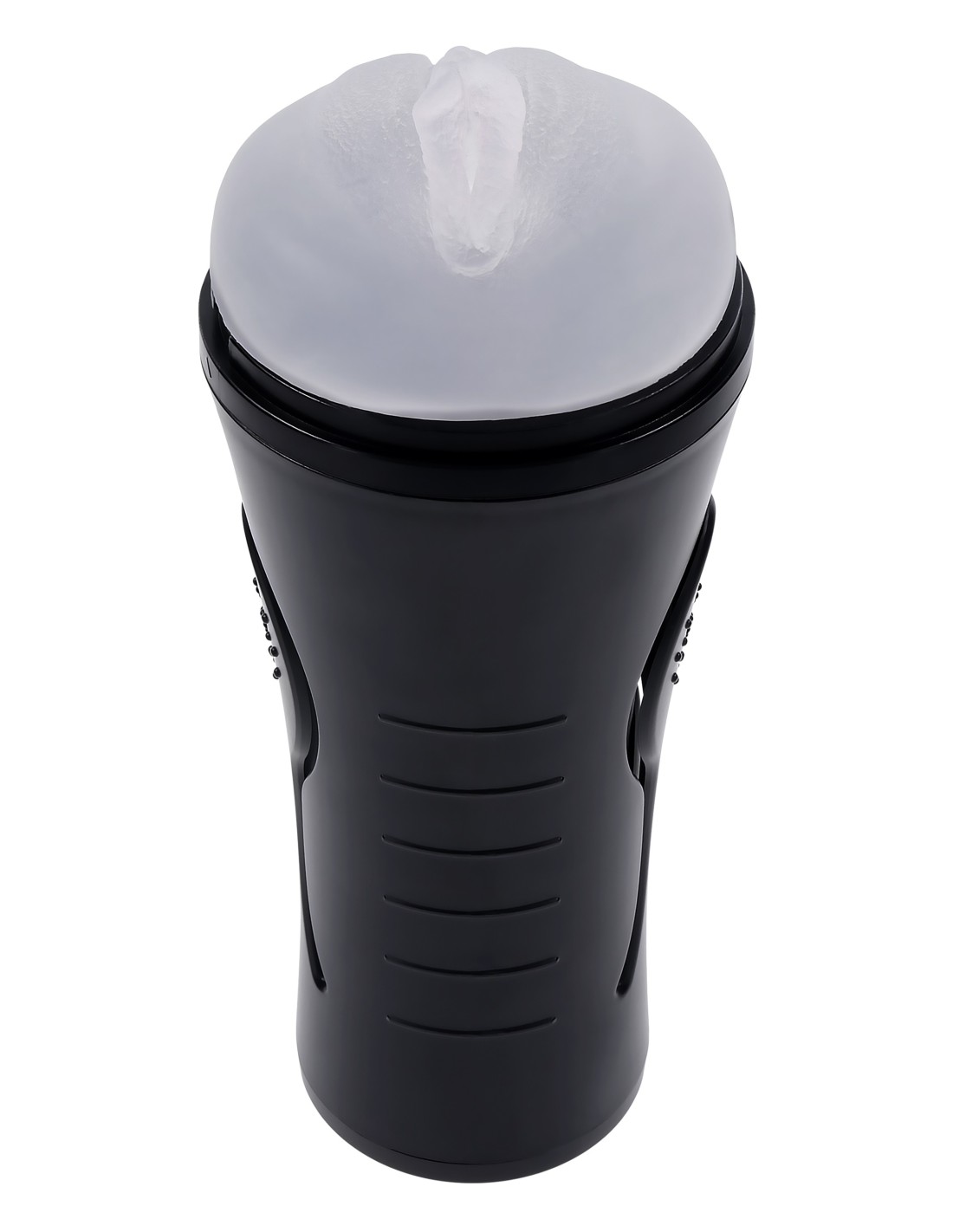 Hold on tight for a powerful pleasure ride with this clever vibrating stroker that features a squeezable cannister to tighten your experience on demand. Slip into the beautifully-crafted realistic vaginal entry, into a soft and squishy channel that tightens as you squeeze the dynamic handle with a comfortable, no-slip grip.