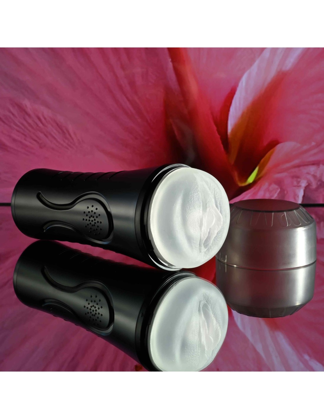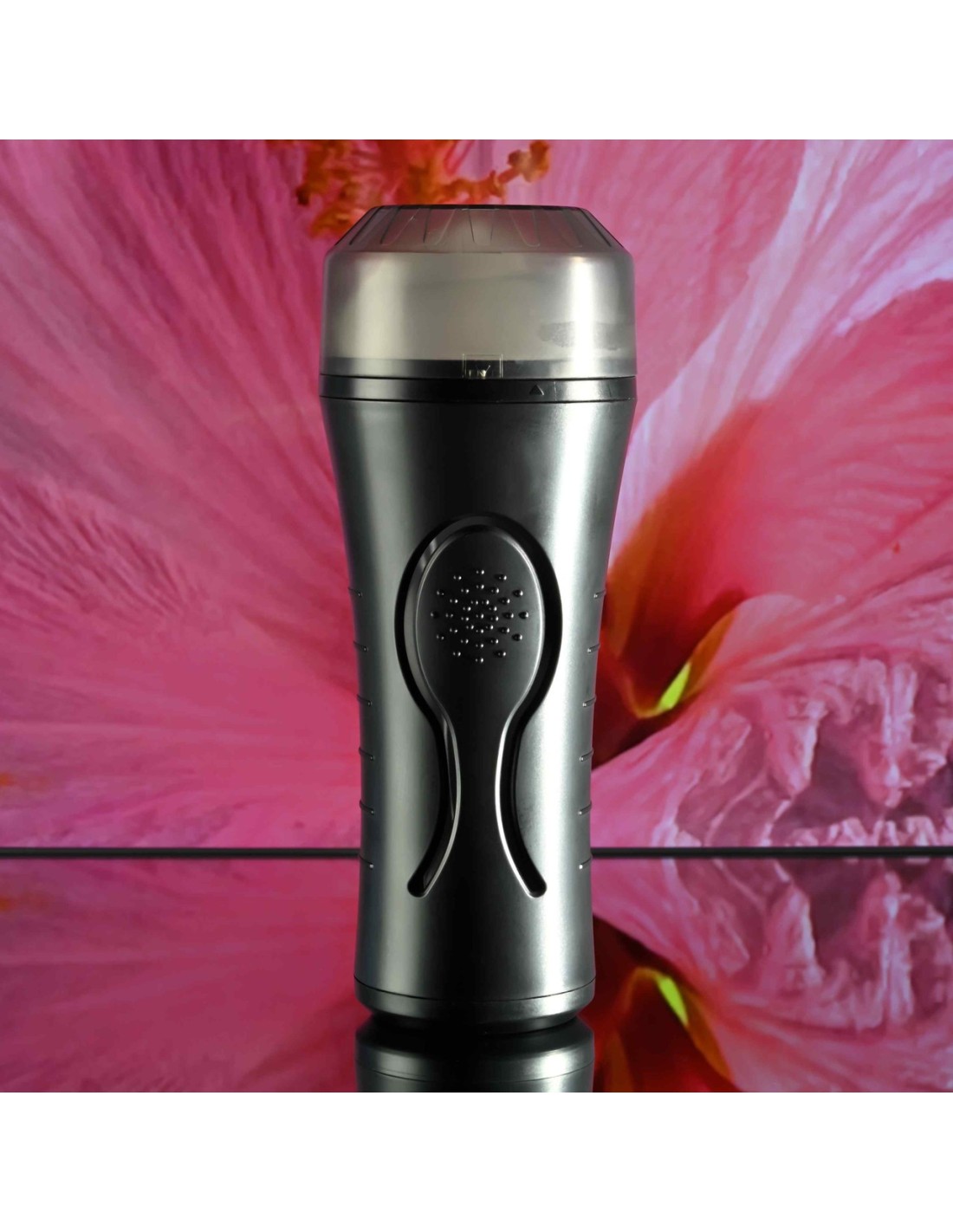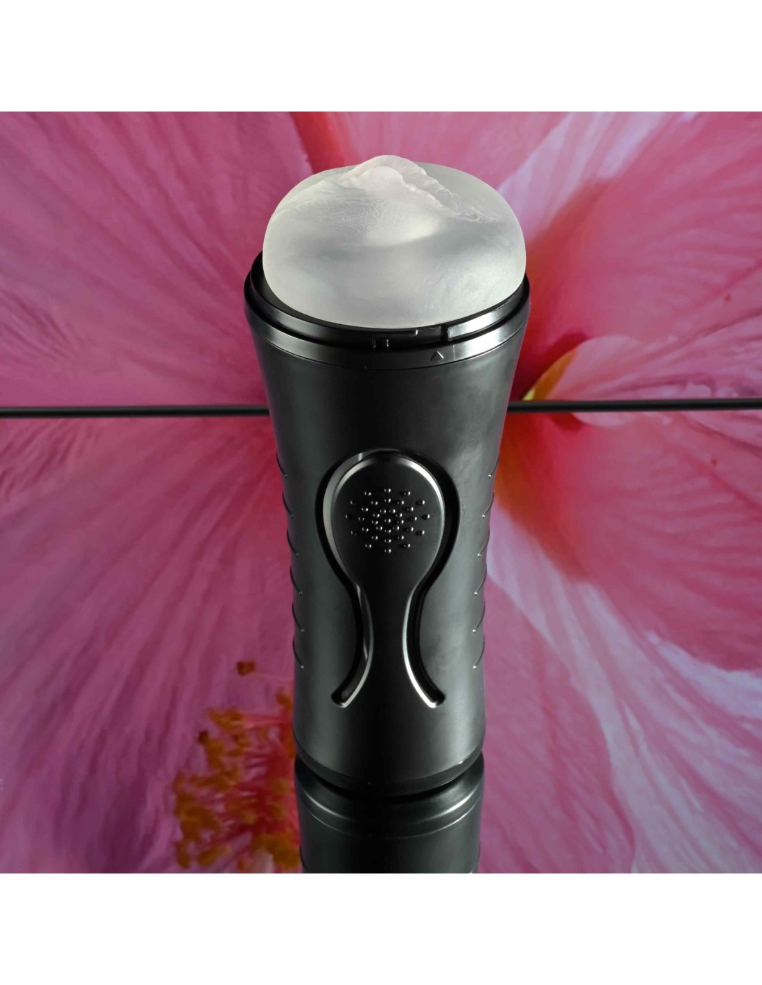 Hold on tight for a powerful pleasure ride with this clever vibrating stroker that features a squeezable cannister to tighten your experience on demand. Slip into the beautifully-crafted realistic vaginal entry, into a soft and squishy channel that tightens as you squeeze the dynamic handle with a comfortable, no-slip grip.