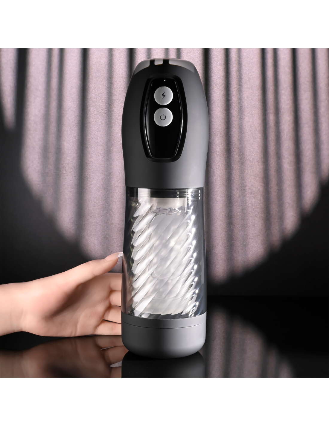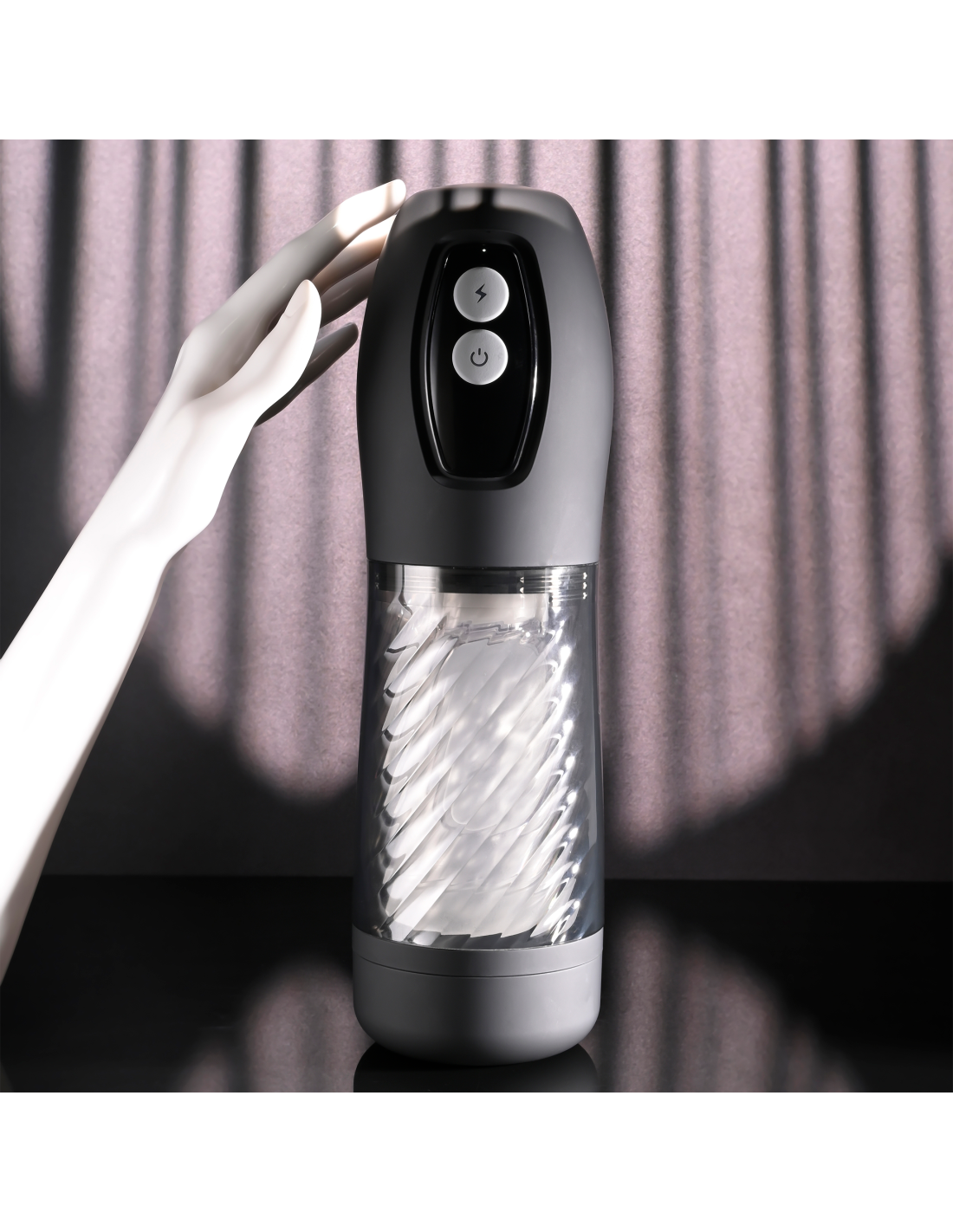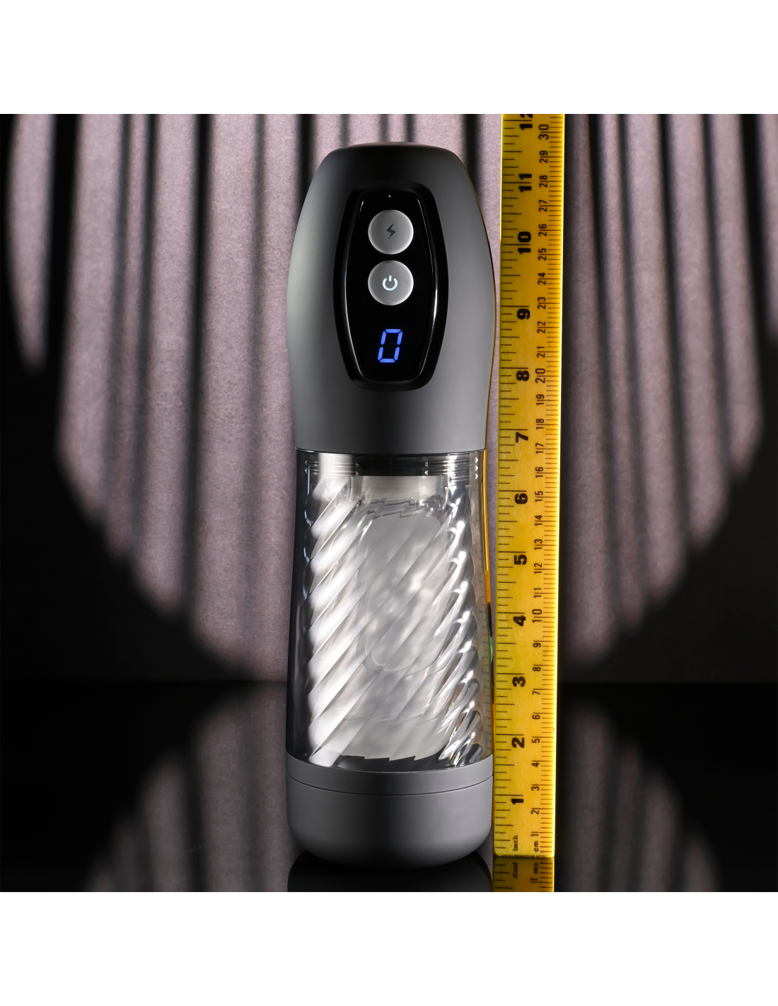 You’re in for a Whirlwind of pleasure with this life-like thrusting, spinning stroker that takes you on a dizzying thrill ride. The realistic firm yet squishy inner channel is nubbed for a tantalizing massage feel while the motors amp up through 8 speeds and rhythms – as well as turbo mode, which delivers maximum power when you’re ready for lift-off. A digital display keeps you up to speed as your hand rests comfortably around the spiral-textured canister.