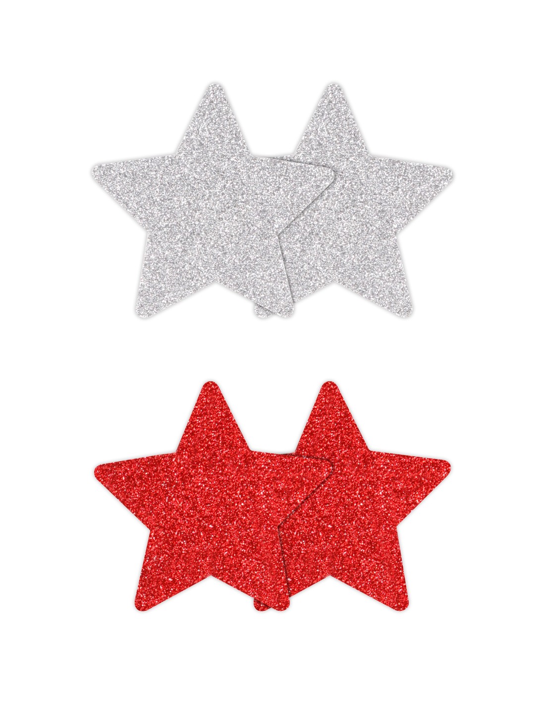 PRETTY PASTIES GLITTER ESTRELLAS ROJO PLATA 2 PAR