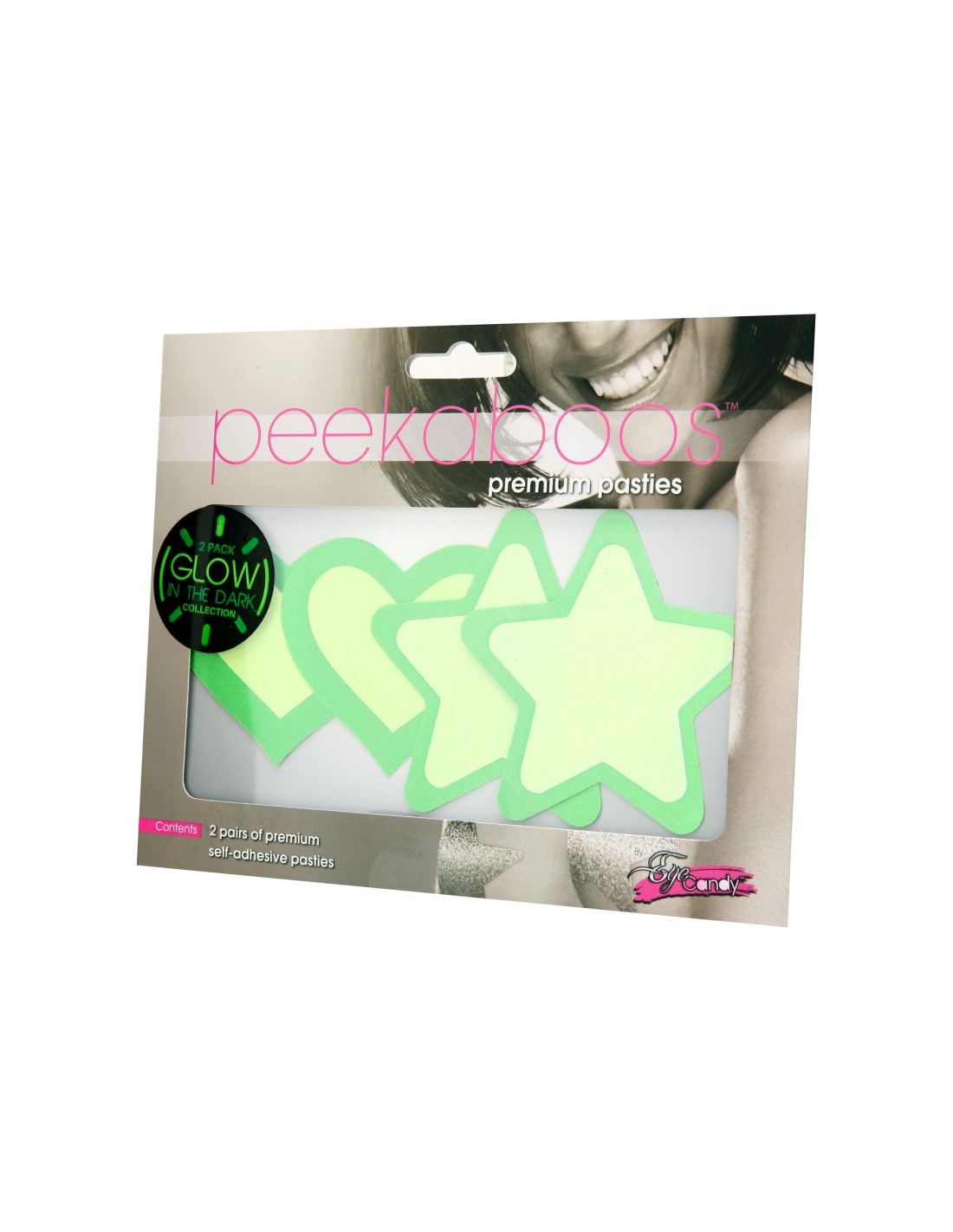 PEEKABOO PASTIES BRILLAN EN LA OSCURIDAD CORAZONES Y ESTRELLAS VERDE