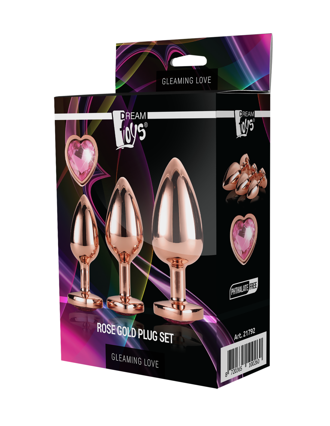 Los plugs con joyas están bellamente decorados con una delicada piedra preciosa en forma de corazón. Desde la punta hasta la base, los tapones anales sin costuras presentan un brillo resplandeciente que combina maravillosamente con el brillo de la gema a juego. La forma cónica de bulbo de los plugs combina la facilidad de uso con el placer erótico de la puerta trasera. Los plugs Gleaming Love se pueden calentar o enfriar en agua antes de su uso para proporcionar sensaciones adicionales. Se incluye una bolsa de almacenamiento hecha de suave tela aterciopelada que se cierra con un cordón.