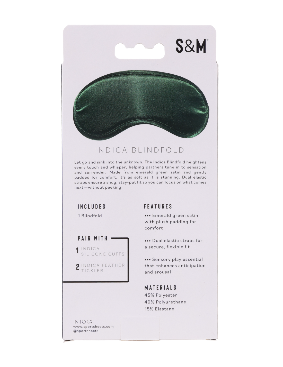 Let go and sink into the unknown. The Indica Blindfold heightens every touch and whisper, helping partners tune in to sensation and surrender. Made from emerald green satin and gently padded for comfort, it’s as soft as it is stunning. Dual elastic straps ensure a snug, stay-put fit so you can focus on what comes next — without peeking.