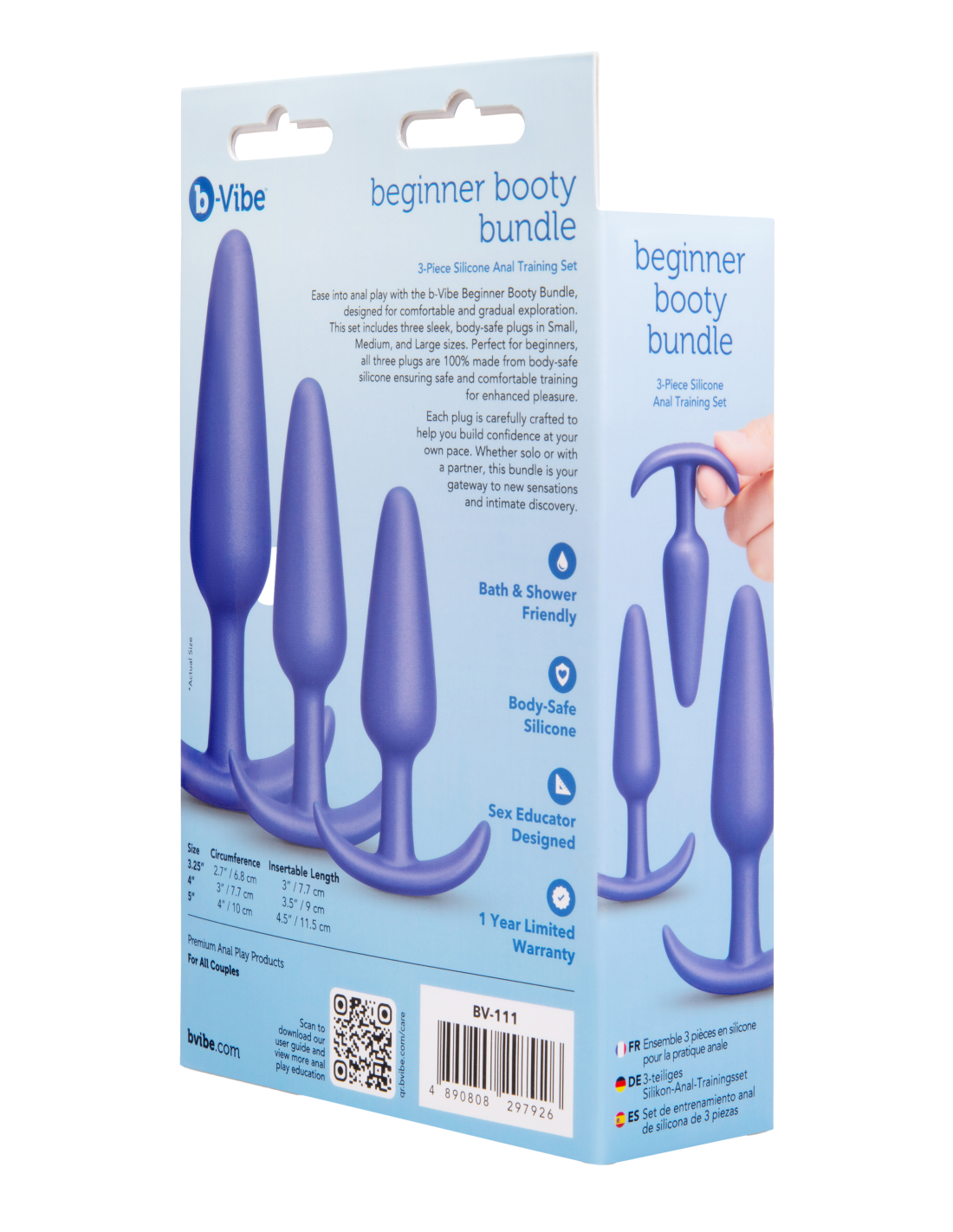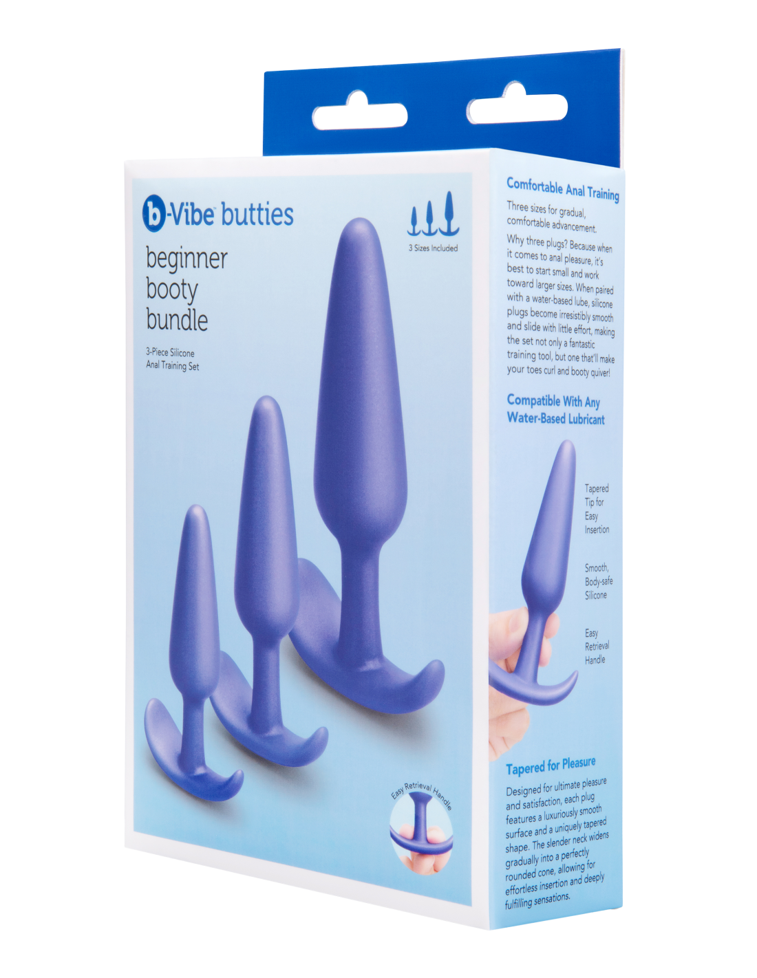 Ease into anal play with the b-Vibe Beginner Booty Bundle, thoughtfully designed for comfortable and gradual exploration. This set includes 3 sleek, body-safe silicone plugs in Small, Medium, and Large sizes, perfect for building confidence at your own pace. Whether enjoying solo or with a partner, this bundle is your gateway to new sensations and intimate discovery.
