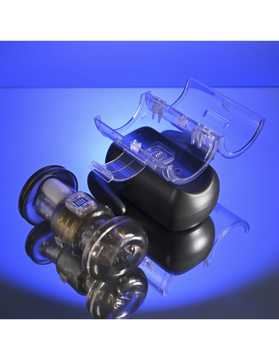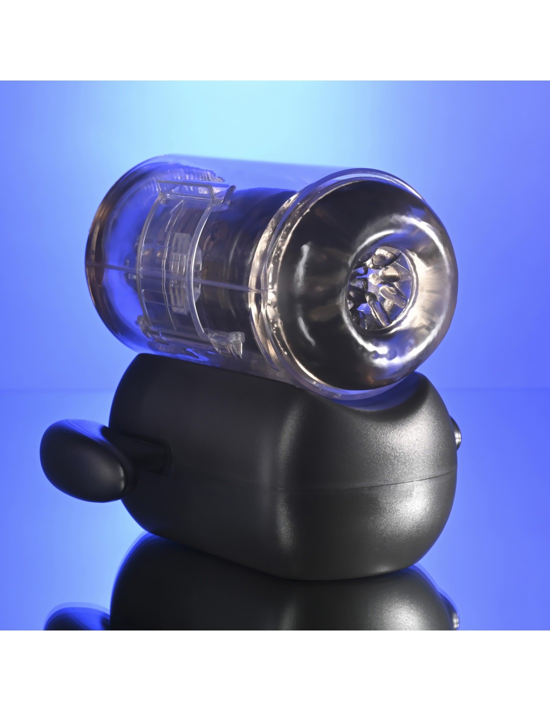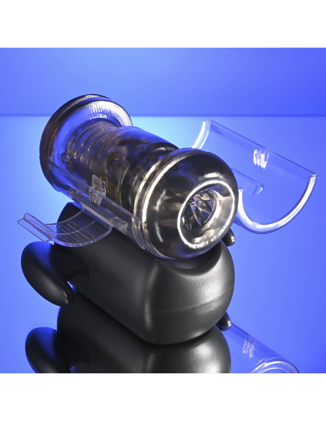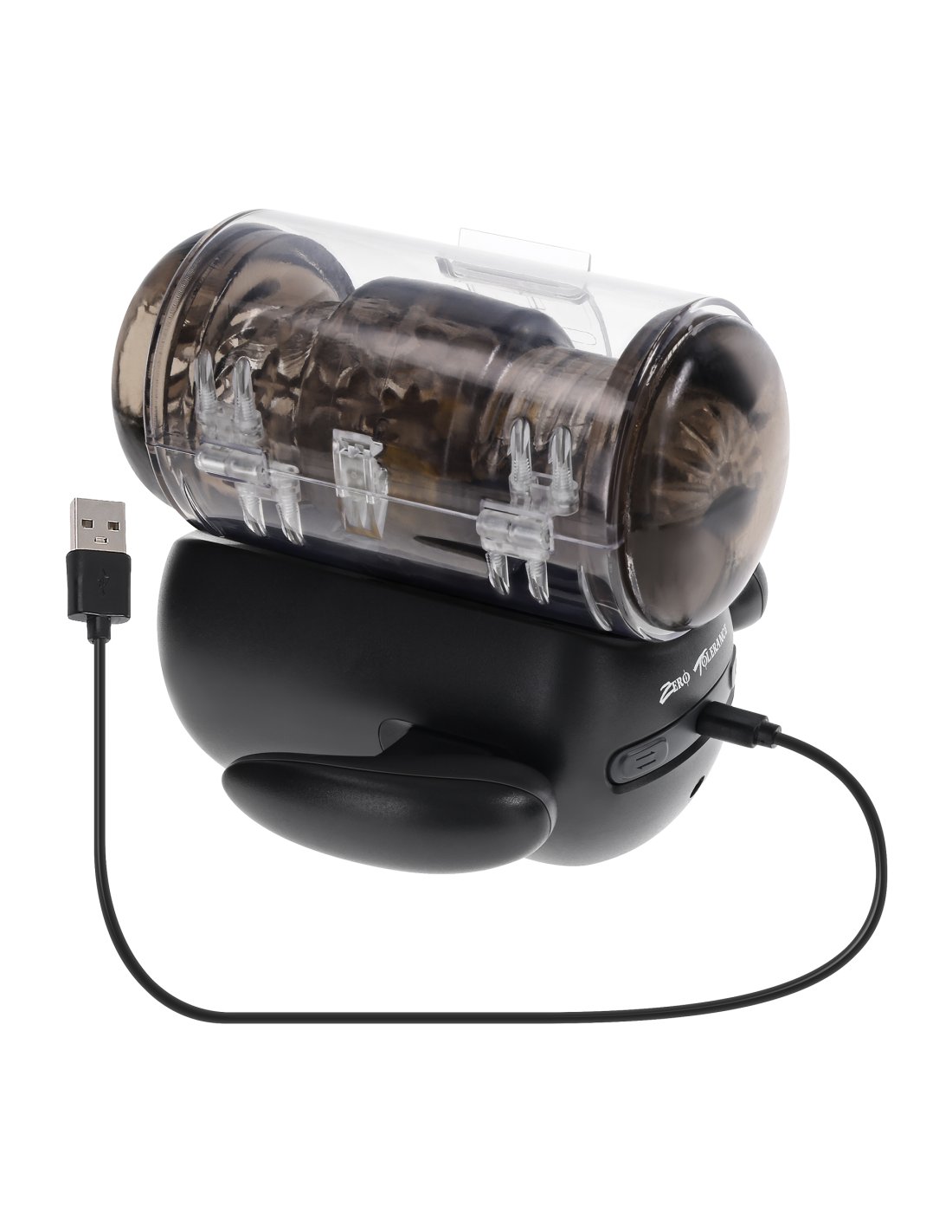 This unique vibrating, heated stroker thrusts in multiple speeds to keep up with your wildest fantasy. Get a comfortable grip on the gaming-style handles on either side while you watch a complimentary erotic movie on your phone that conveniently attaches to the end of the toy. Let the beaded inner channel surround you with soft yet firm textures that feel just like the real thing – and warm the whole sleeve up with a quick double-click. All motors are controlled separately by a panel you can reach with ease, and the sleeve removes from its magnetic base for quick and easy cleaning.
