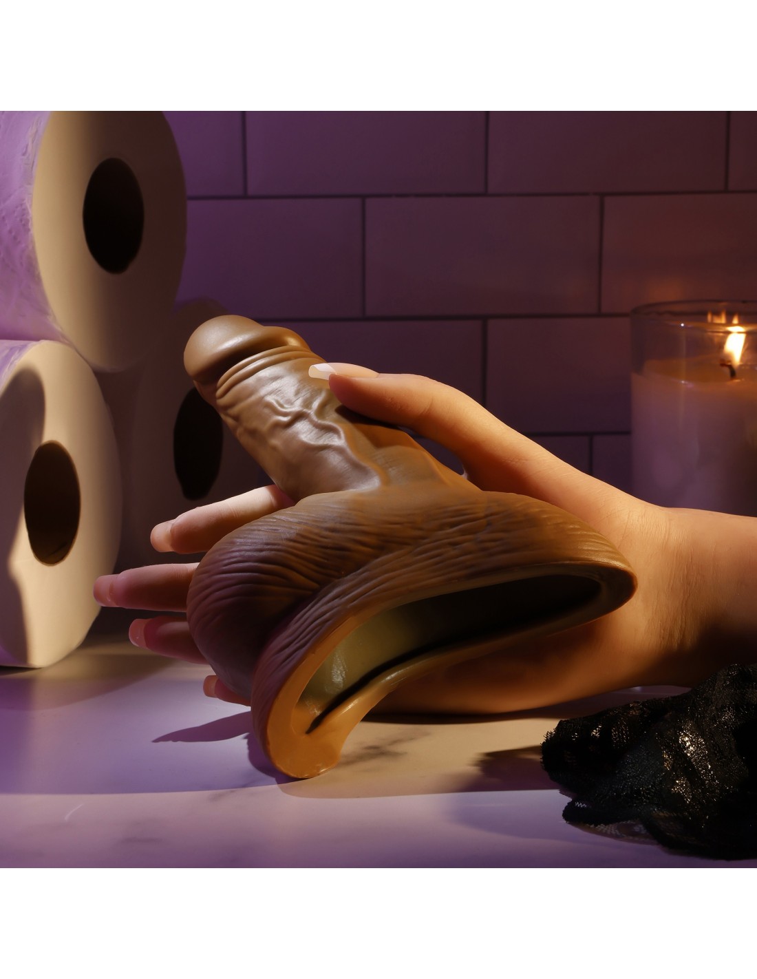 This realistic STP boasts life-like looks and excellent engineering, featuring well-crafted realistic textures and an effective funnel that’s easy to aim. A gentle curve against the body ensures a flawless seal for relaxed comfort, while clean-up is a snap with soap and water. Latex free &  waterproof. Stand to pee packer.