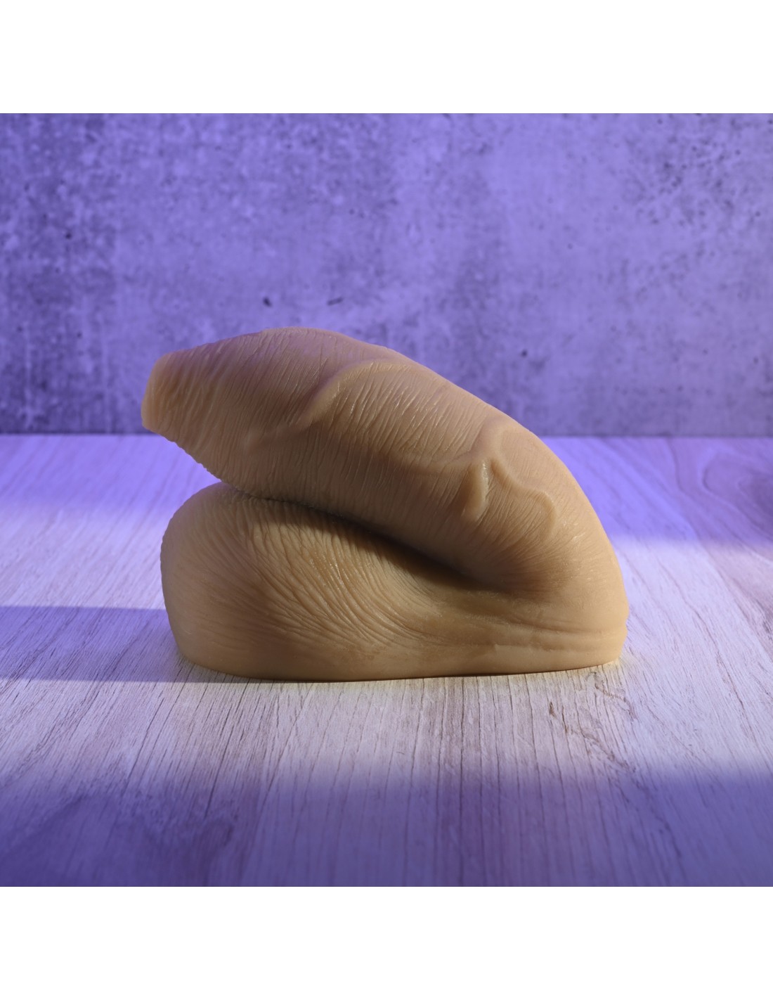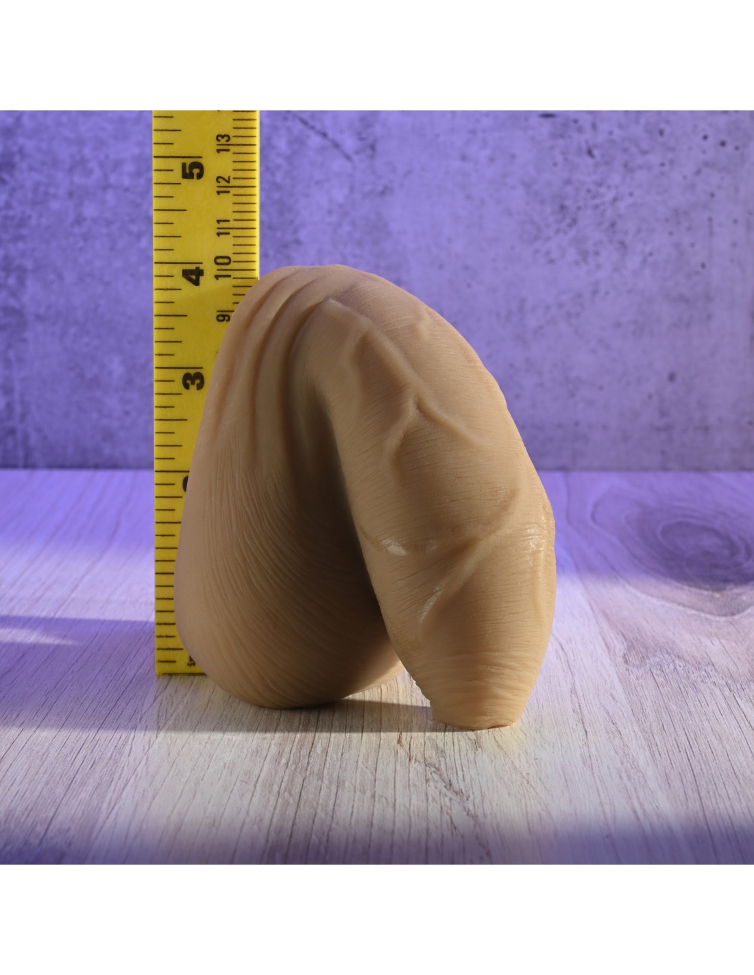 This true-to-feel packer features a realistic uncircumcised penis and balls with life-like veins and wrinkles, designed as a satisfying weight to tuck securely into close-fitting garments.
