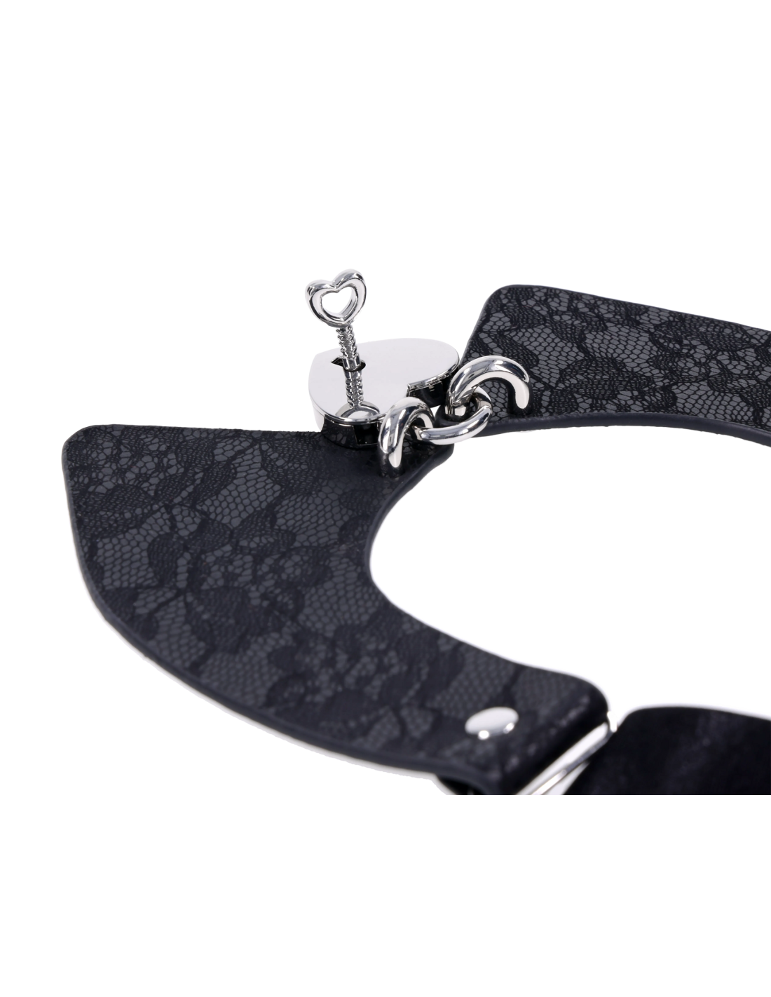 A symbol of devotion with a touch of edge. The Heartbound Lace Day Collar blends elegance and submission in a design that’s as stylish as it is sensual. Crafted from luxurious lace-etched faux leather, this collar features a polished silver heart lock at the front - securing the collar in place while adding a bold statement piece to your look. The adjustable bra-strap-style at the back ensures a comfortable, custom fit, making it perfect for all-day wear. Whether worn as a fashion accessory or a discreet symbol of your dynamic, the Heartbound Lace Day Collar invites you to embrace your desires with confidence.