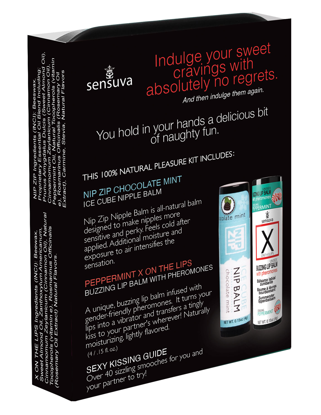 SENSUVA LIPS AND NIPS PLEASURE KIT CHOCOLATE NIP ZIP AND CHOCOLATE PEPPERMINT LTD EDITION XBALM