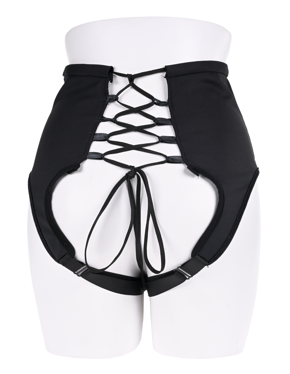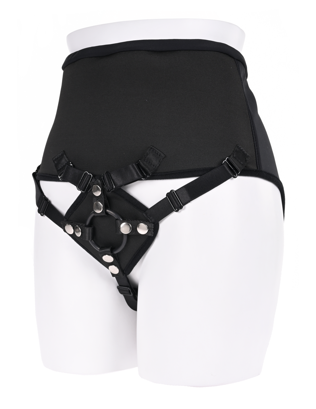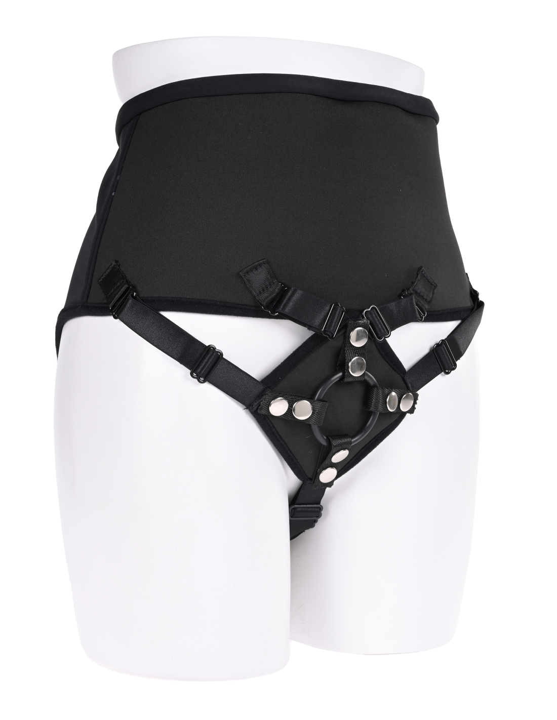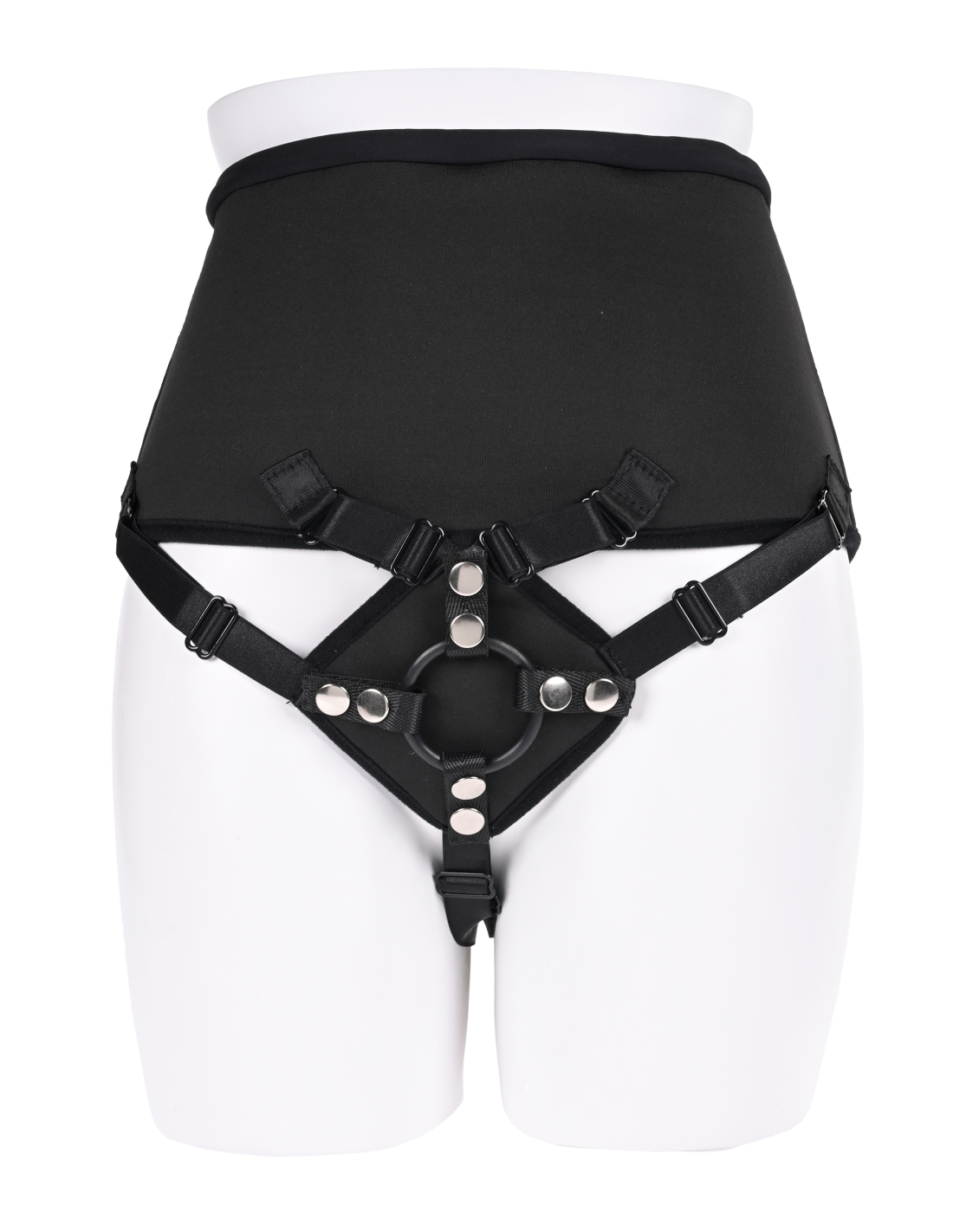 Explore powerful intimacy through the perfect blend of comfort and control with the High Waisted Corset Strap-On Harness. Designed with a high quality, stretchy fabric, the soft material forms comfortably across your body and uses adjustable corset laces to find the the perfect fit.