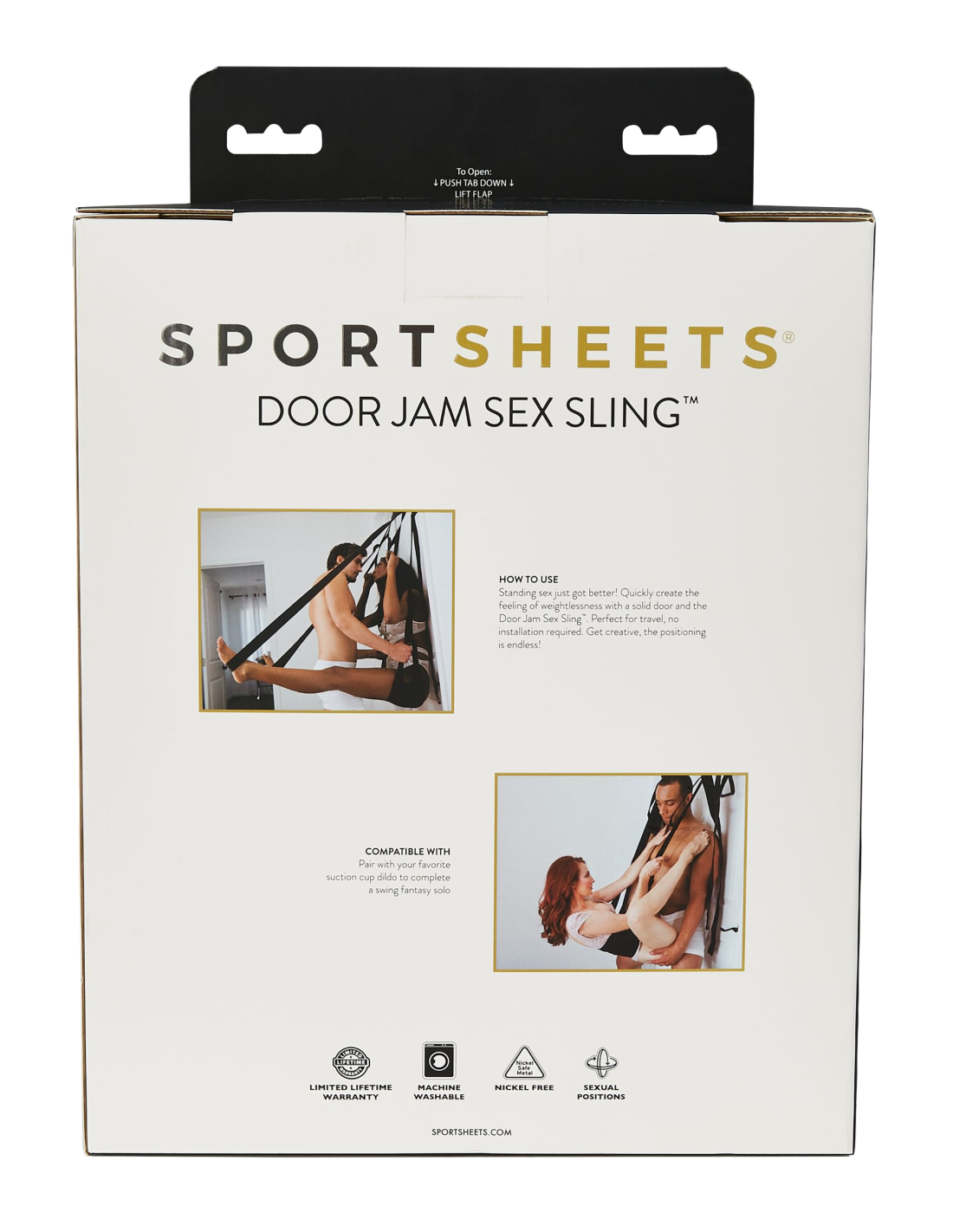 Strong, durable, and highly adjustable for your most creative sexual endeavors! With the Door Jam Sex Sling, Sportsheets has designed a solution that empowers couples to experiment with exciting new positions without worries about stamina, awkwardness, or injuries. Just secure the sling over your door by closing it on the dowels and adjust each of the straps to the perfect lengths for your bodies and chosen position. The footrests, hand straps, and a padded seat ensure comfort during your most vigorous carnal explorations. When you're both satisfied, this sling is easy to take down and store away for next time!