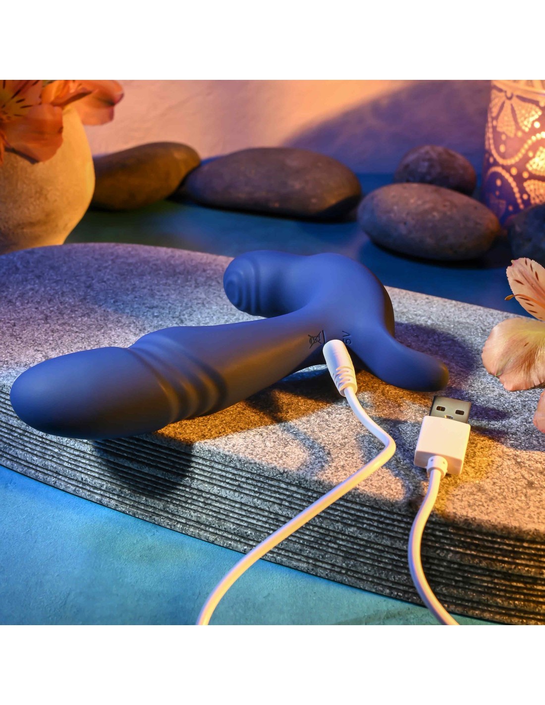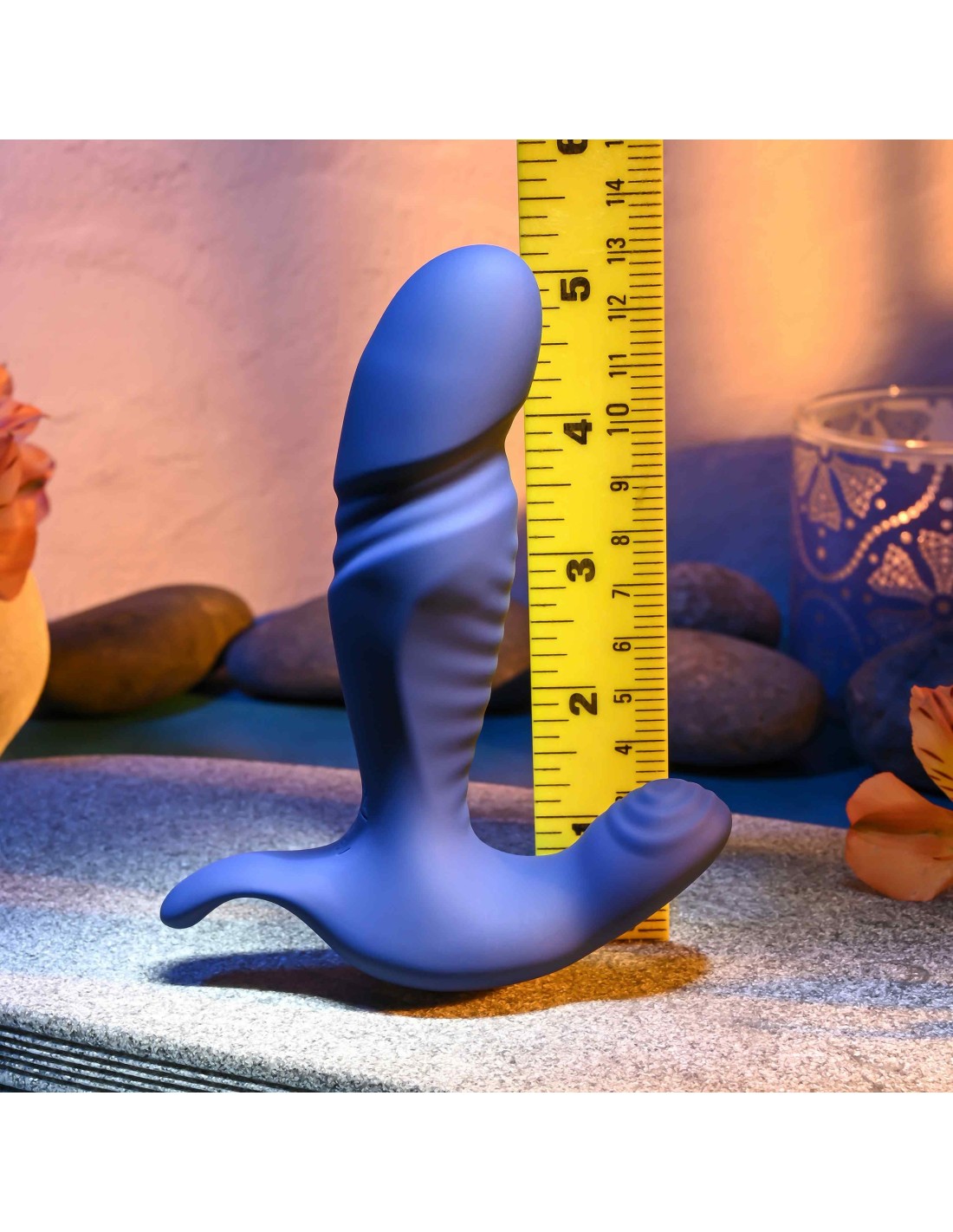 Este juguete de silicona ultrasuave empuja y vibra con dos motores de 10 velocidades que trabajan juntos para brindar una experiencia verdaderamente extraordinaria. Un eje largo y texturizado que empuja se estrecha hasta una cabeza redondeada y suavemente inclinada, mientras que el mango presenta una punta de mini empuje vibratoria en un extremo y una aleta picante en el otro. La satisfactoria forma de T se adapta perfectamente a la mano con curvas y planos que ofrecen posibilidades deliciosas, todo controlado con un simple botón. Sumergible en agua para bañarse o ducharse, recargable y recargable. fácil de limpiar.