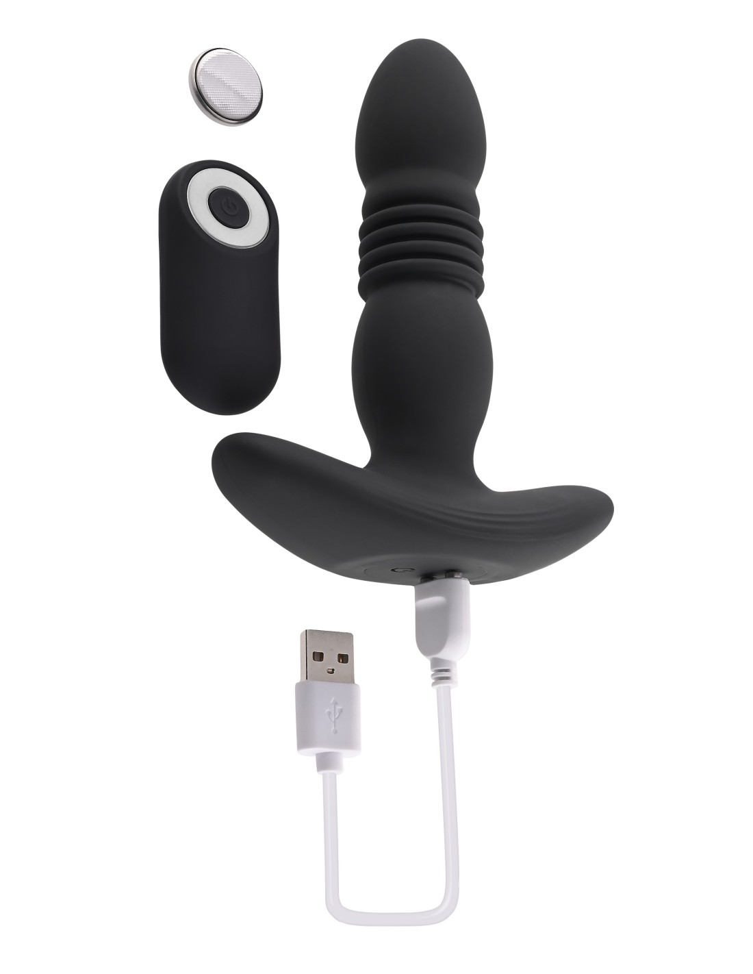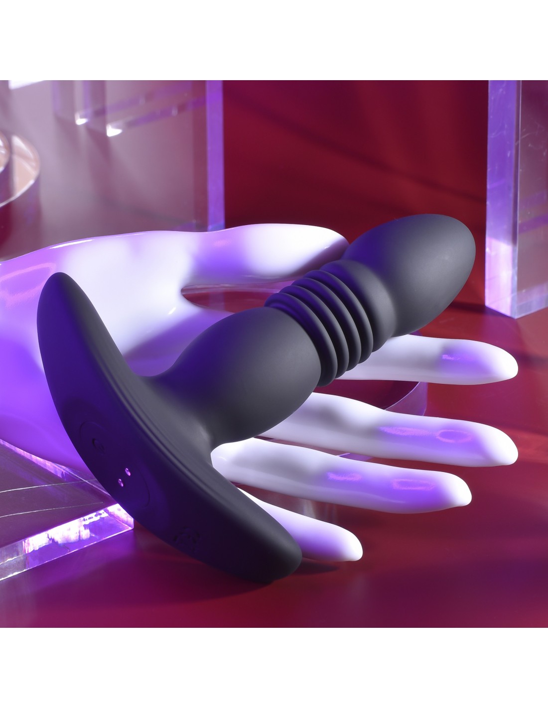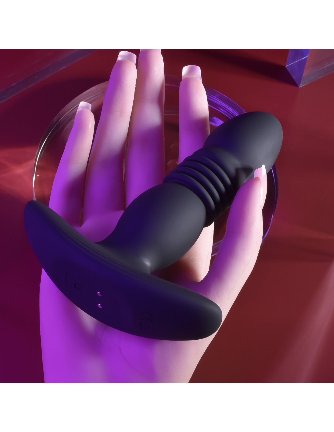 Confiarás en el empuje después de experimentar el poder de este tapón anal vibrante y de empuje. Hecho de silicona suave como el terciopelo, este plug de tamaño discreto proporciona una plenitud placentera mientras experimentas la variedad de 10 velocidades y ritmos. Explora el juego manos libres con el elegante y sencillo control remoto. ¡Libertad para jugar!
