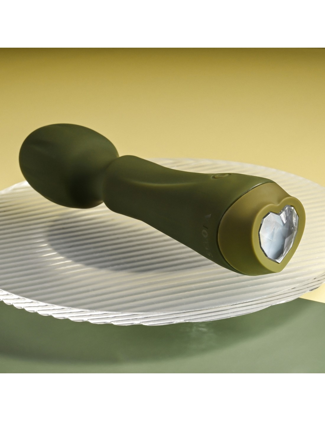Experience the magic of this petite yet powerful wand vibrator with its chunky, textured, flexible head and heart-shaped gem control button at its base.